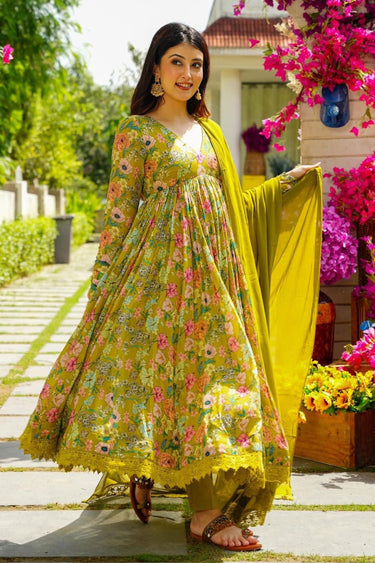 Muslin Fabric Festival Wear Wondrous Gown With Dupatta In Green Color
