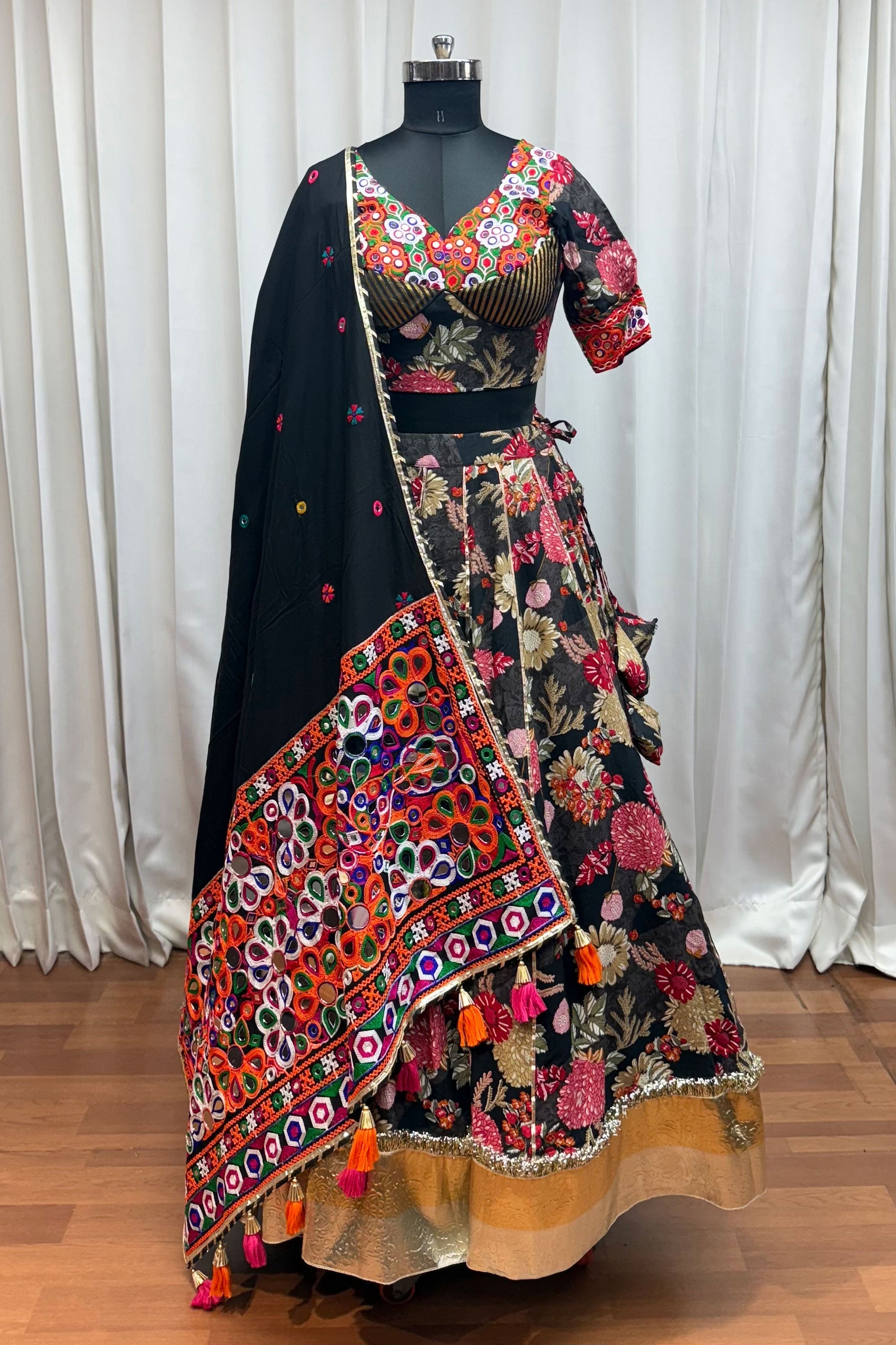 Navratri Special Black Digital Printed Lehenga With Dupatta
