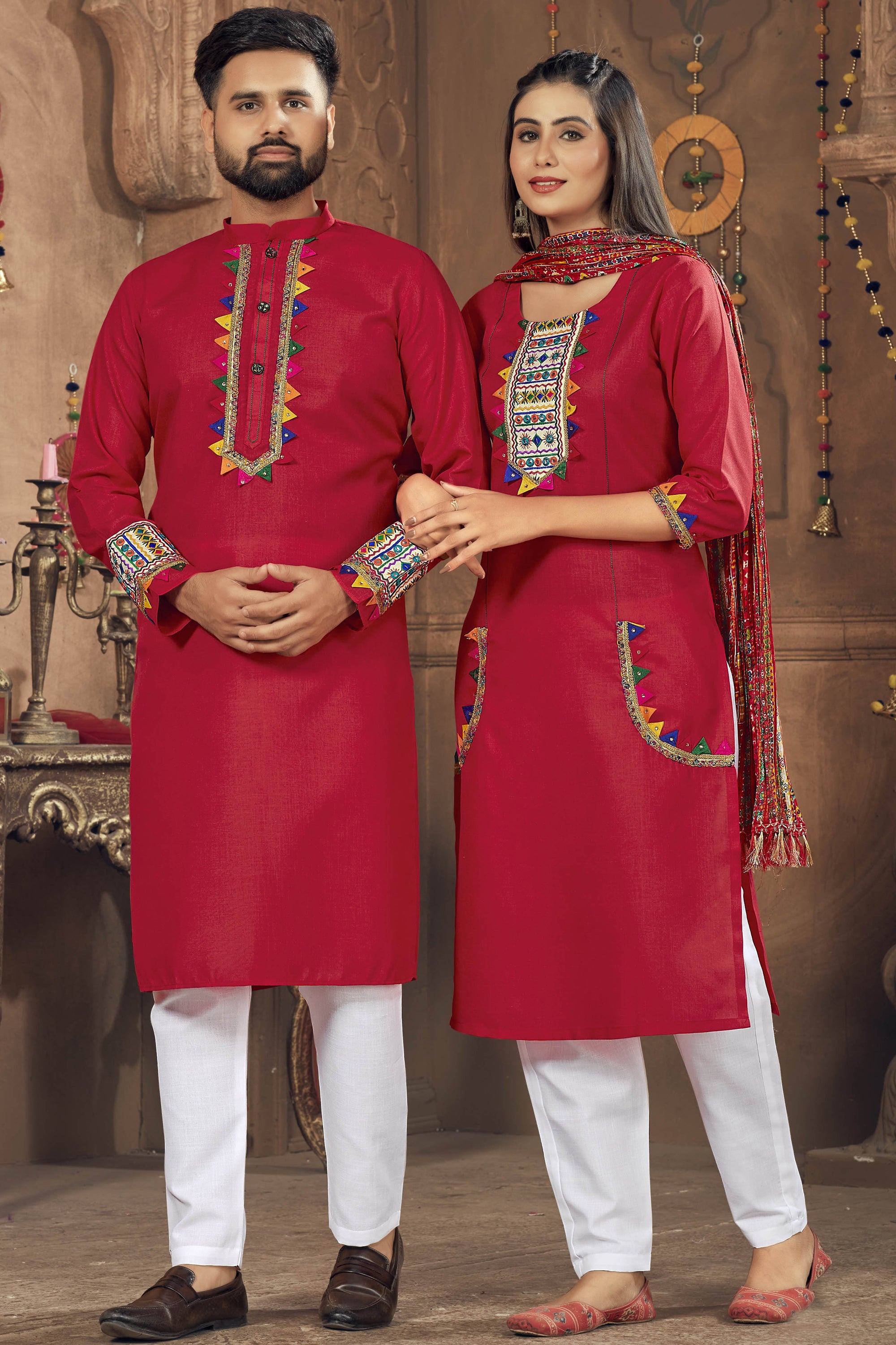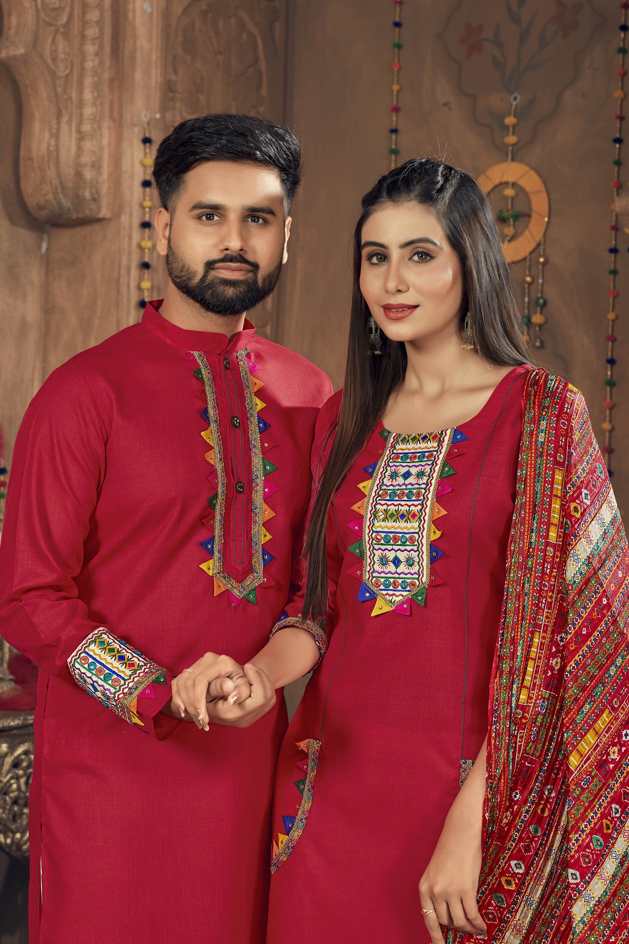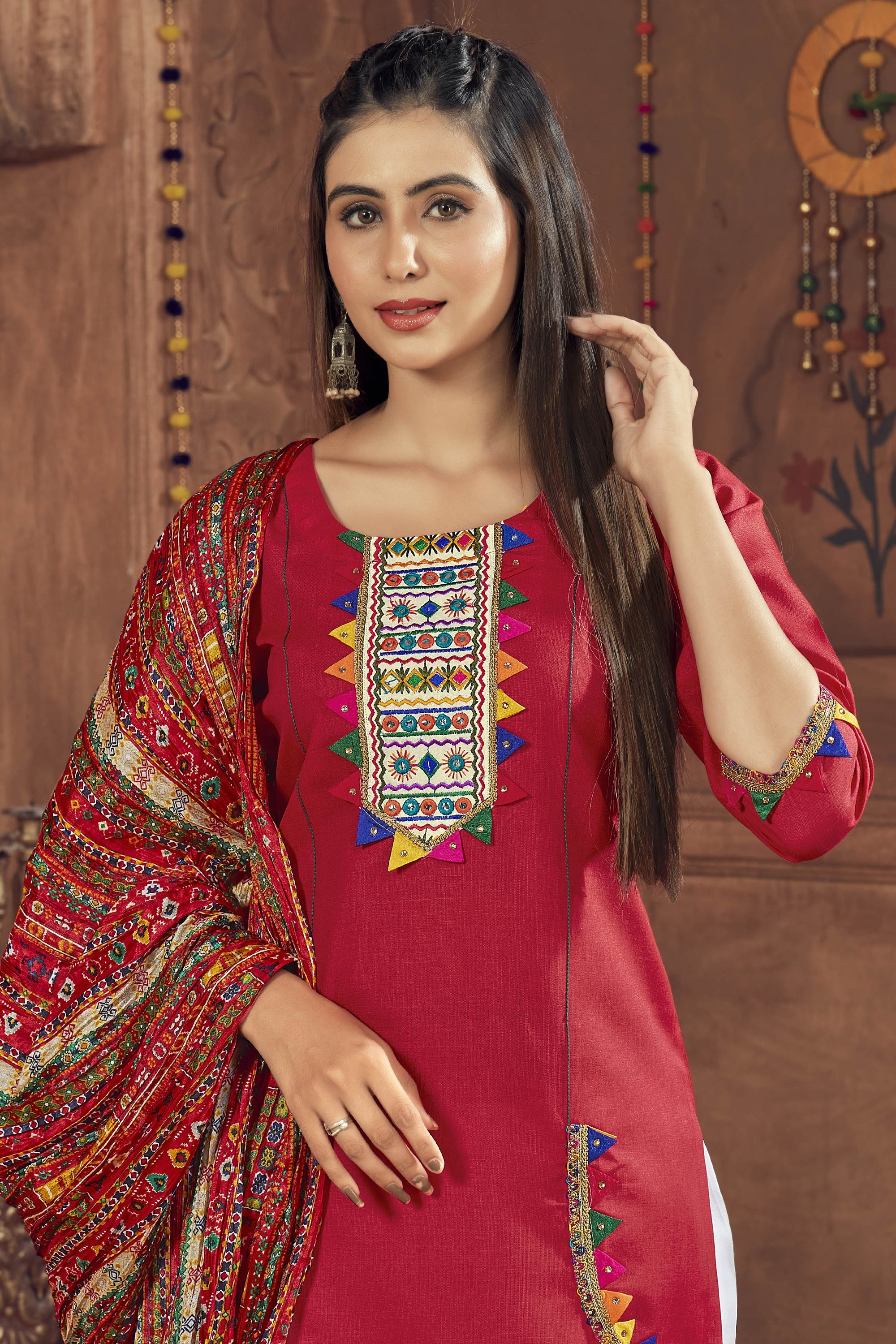 Navratri Special Red Color Cotton Fabric Fancy Embroidered Readymade Designer Salwar Suit