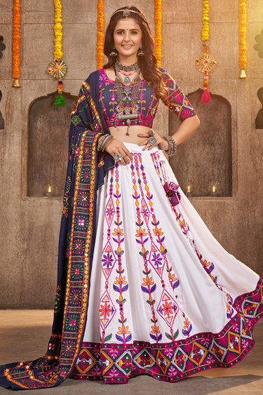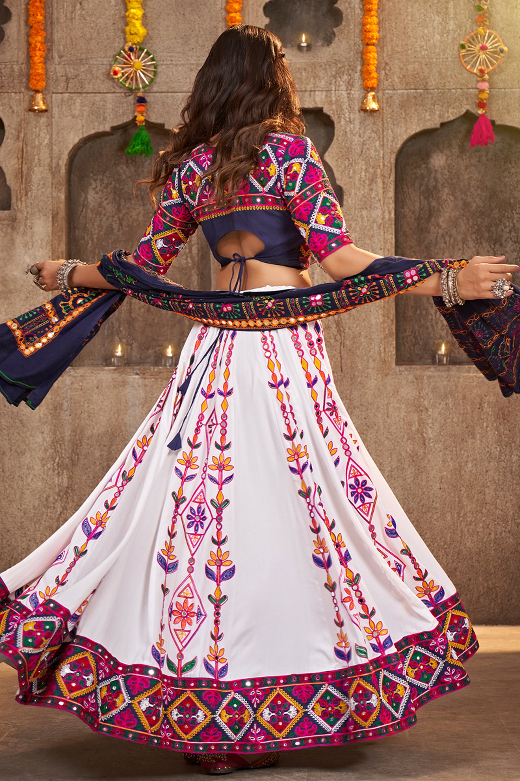 Navratri Special Viscose Rayon Fabric Excellent White Color Lehenga Choli