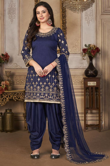 Navy Blue Color Art Silk Fabric Festive Look Tempting Patiala Suits