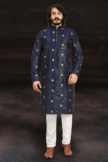 Navy Blue Color Art Silk Fabric Festive Wear Readymade Kurta Pyjama For Men