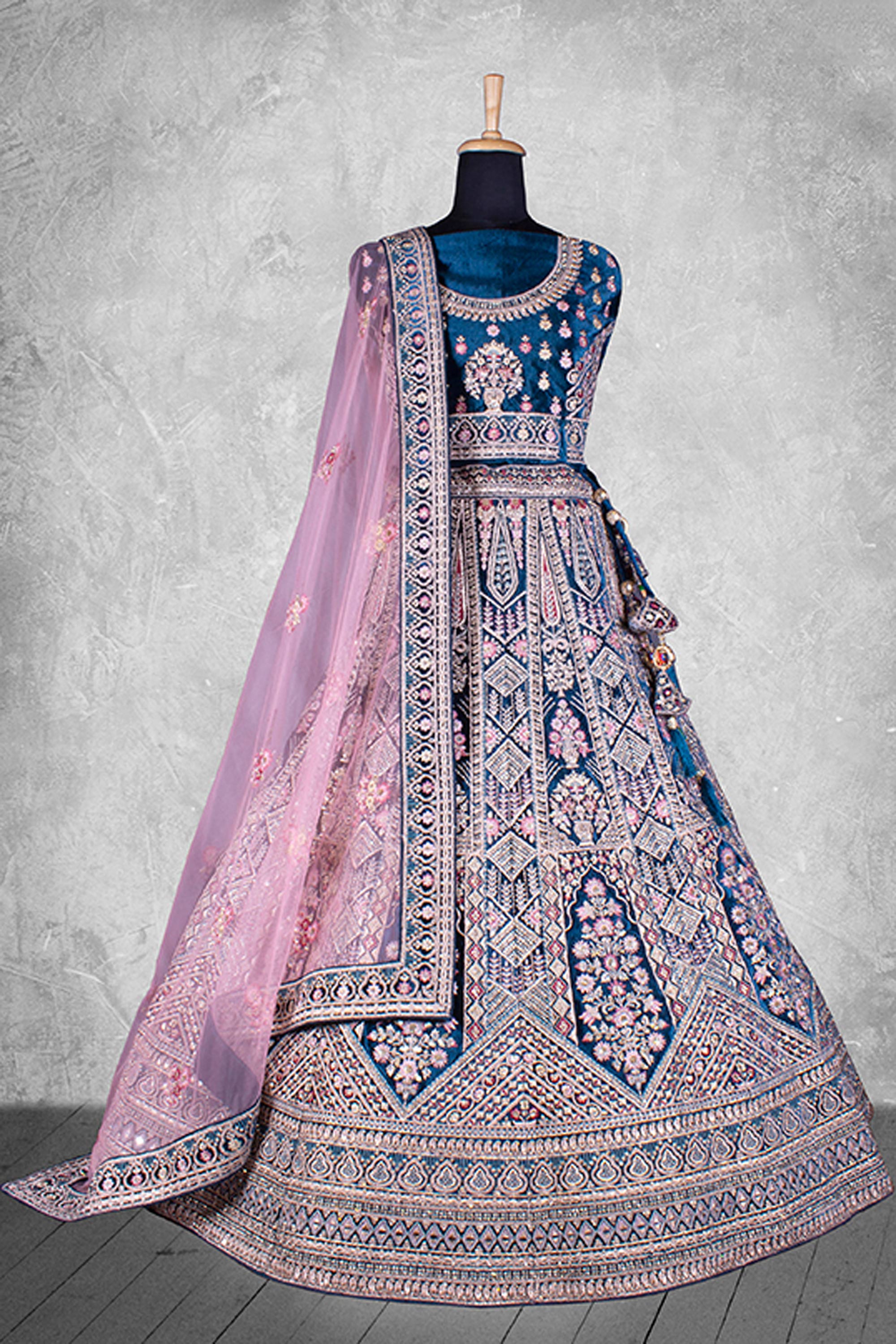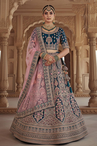 Navy Blue Embroidered Velvet Bridal Lehenga Choli