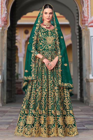 Net Bluish Green Floor Length Eid Wear Anarkali Salwar Suit
