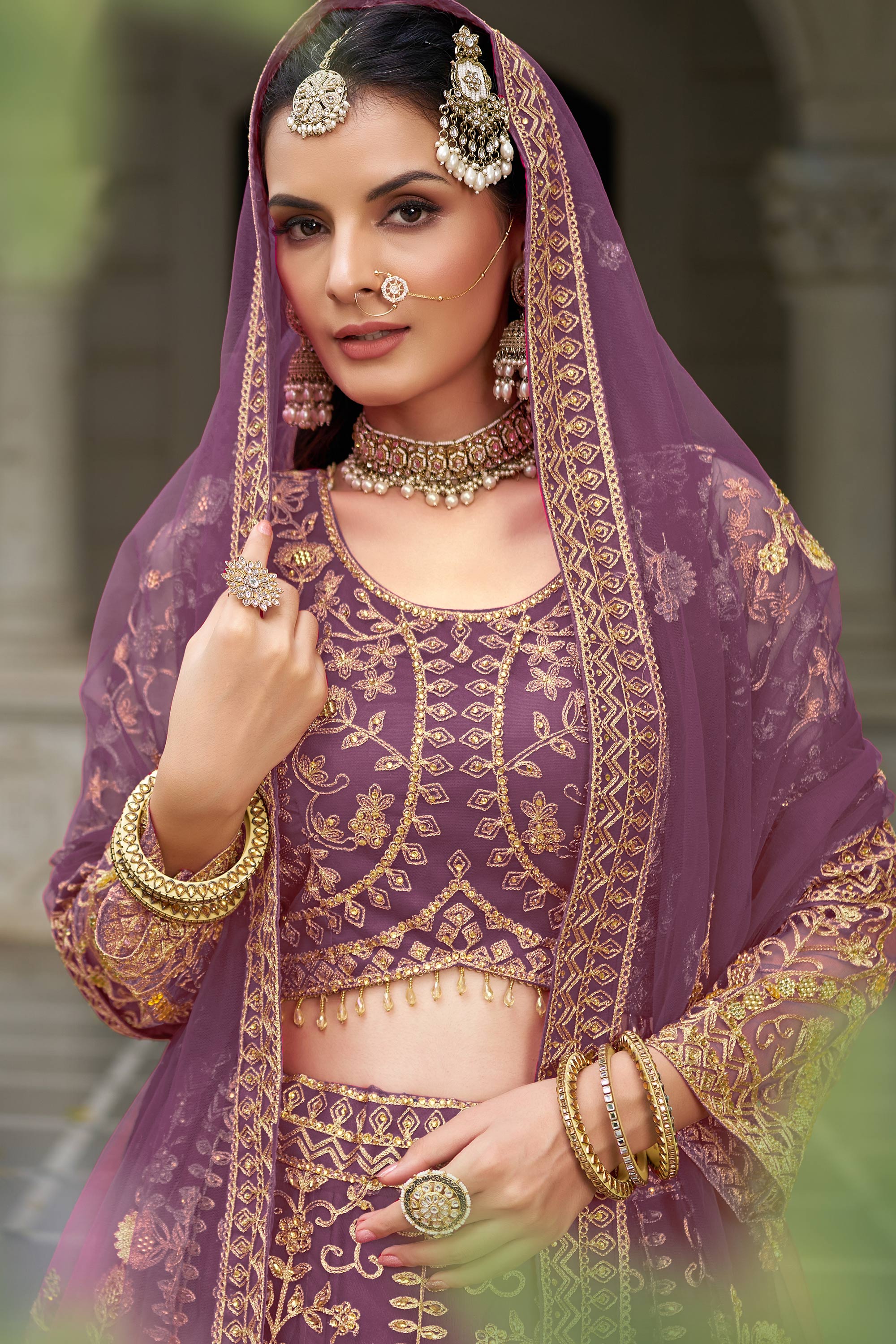 Net Embroidered Purple Lehenga Choli In Net Fabric