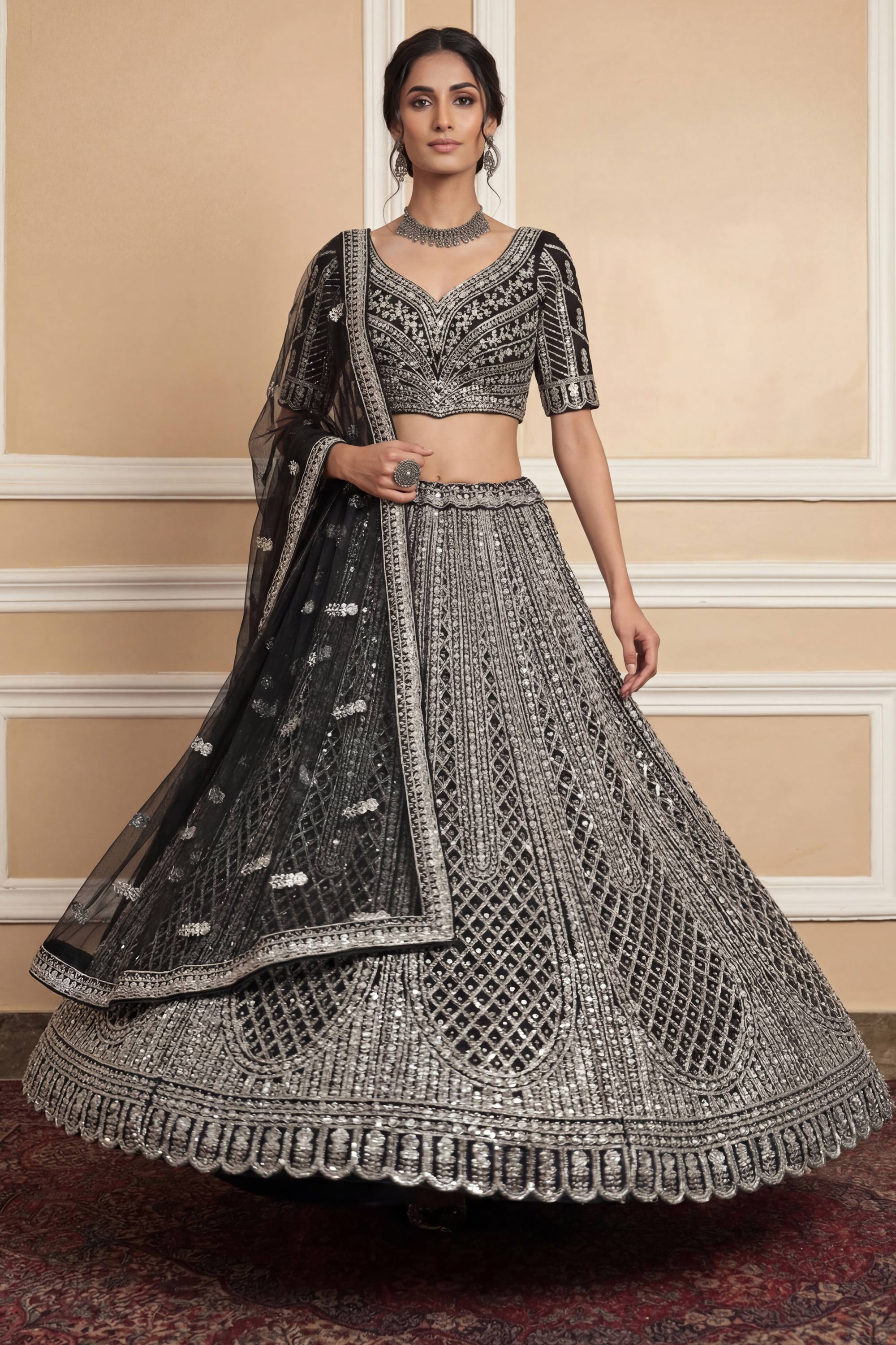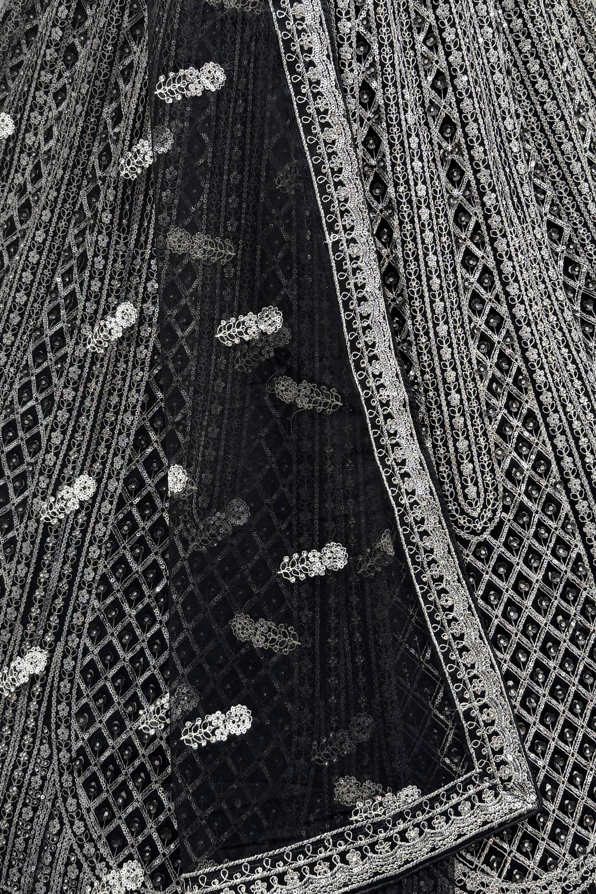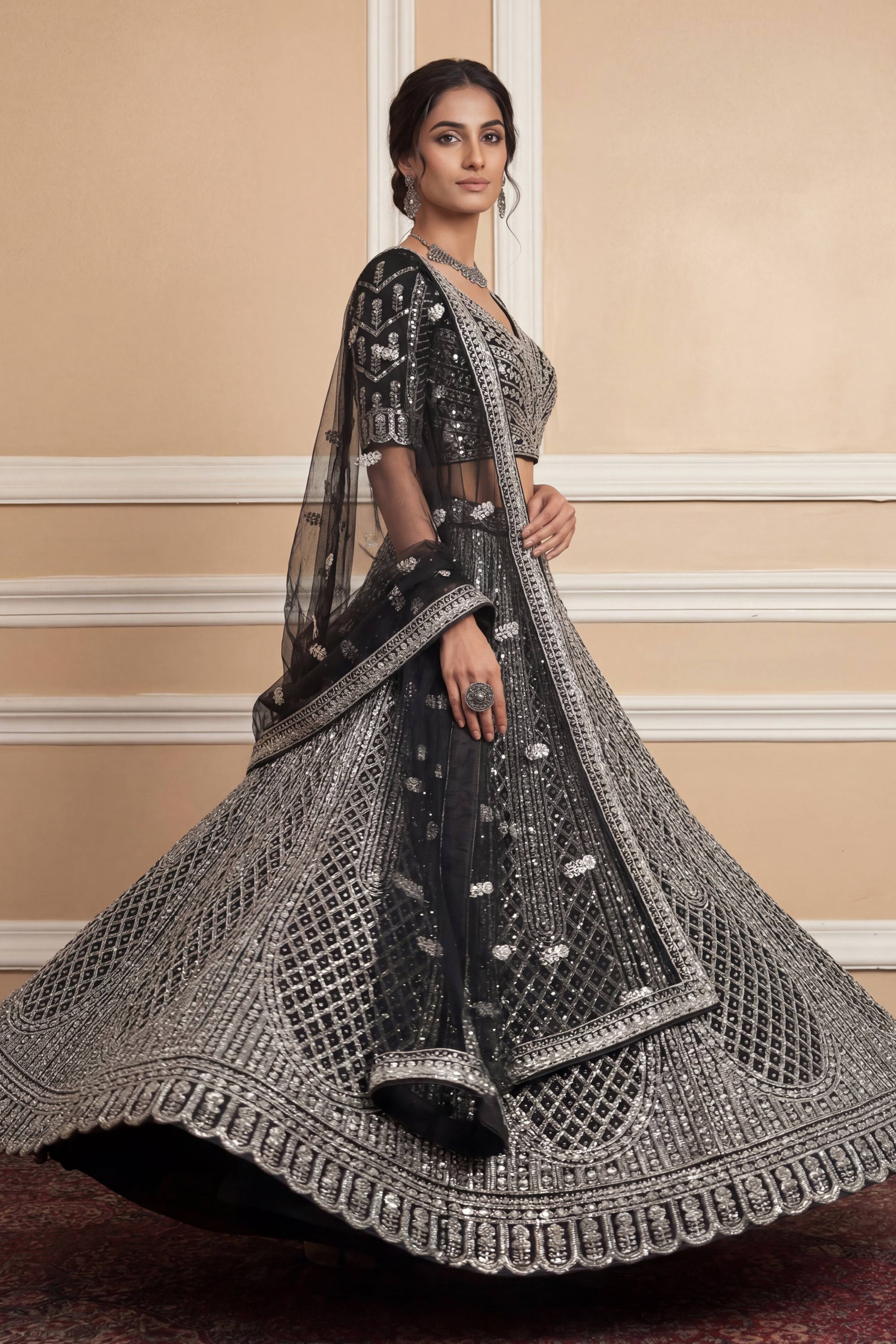 Net Fabric Sequins Embroidered Black Wedding Wear Lehenga Choli With Dupatta