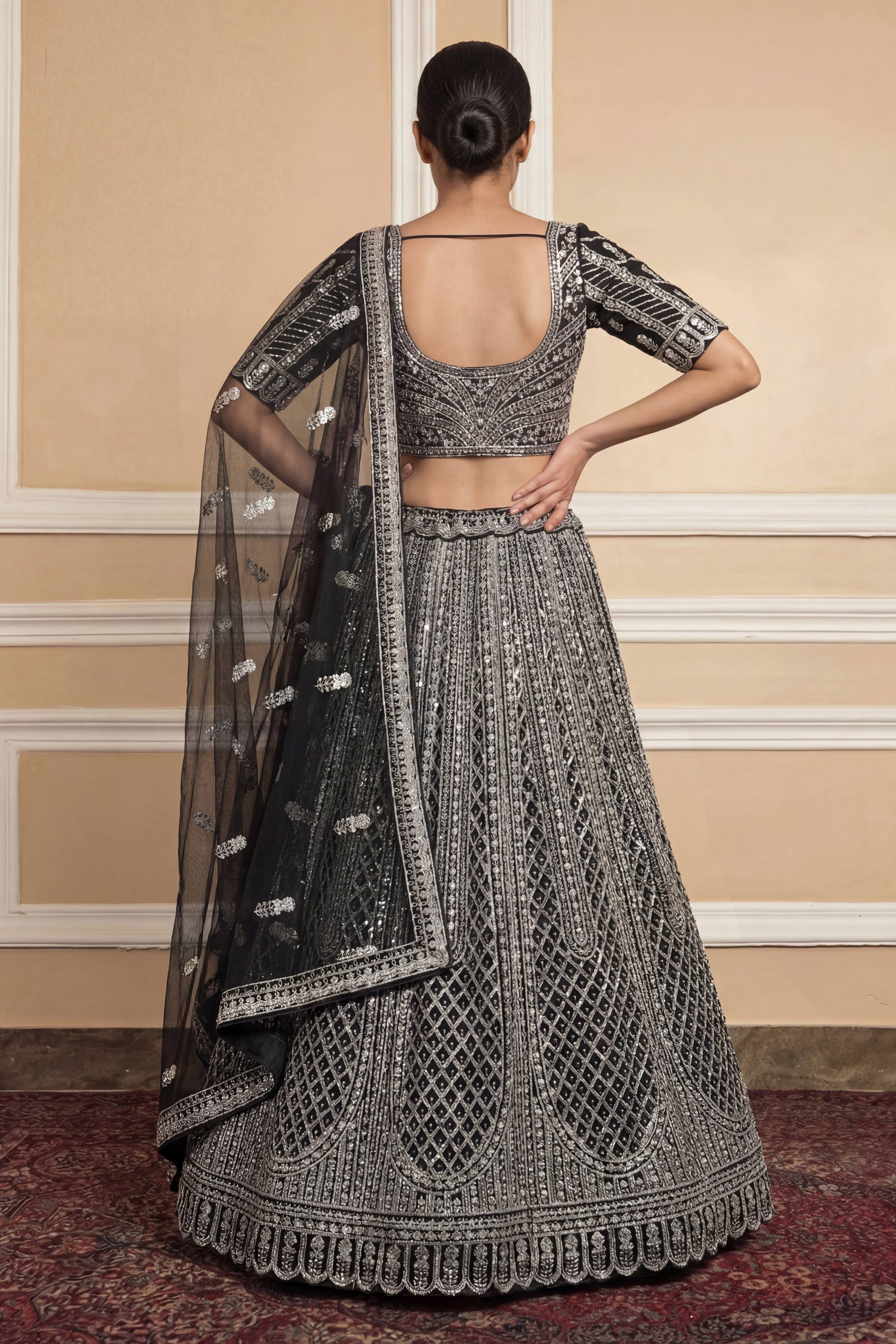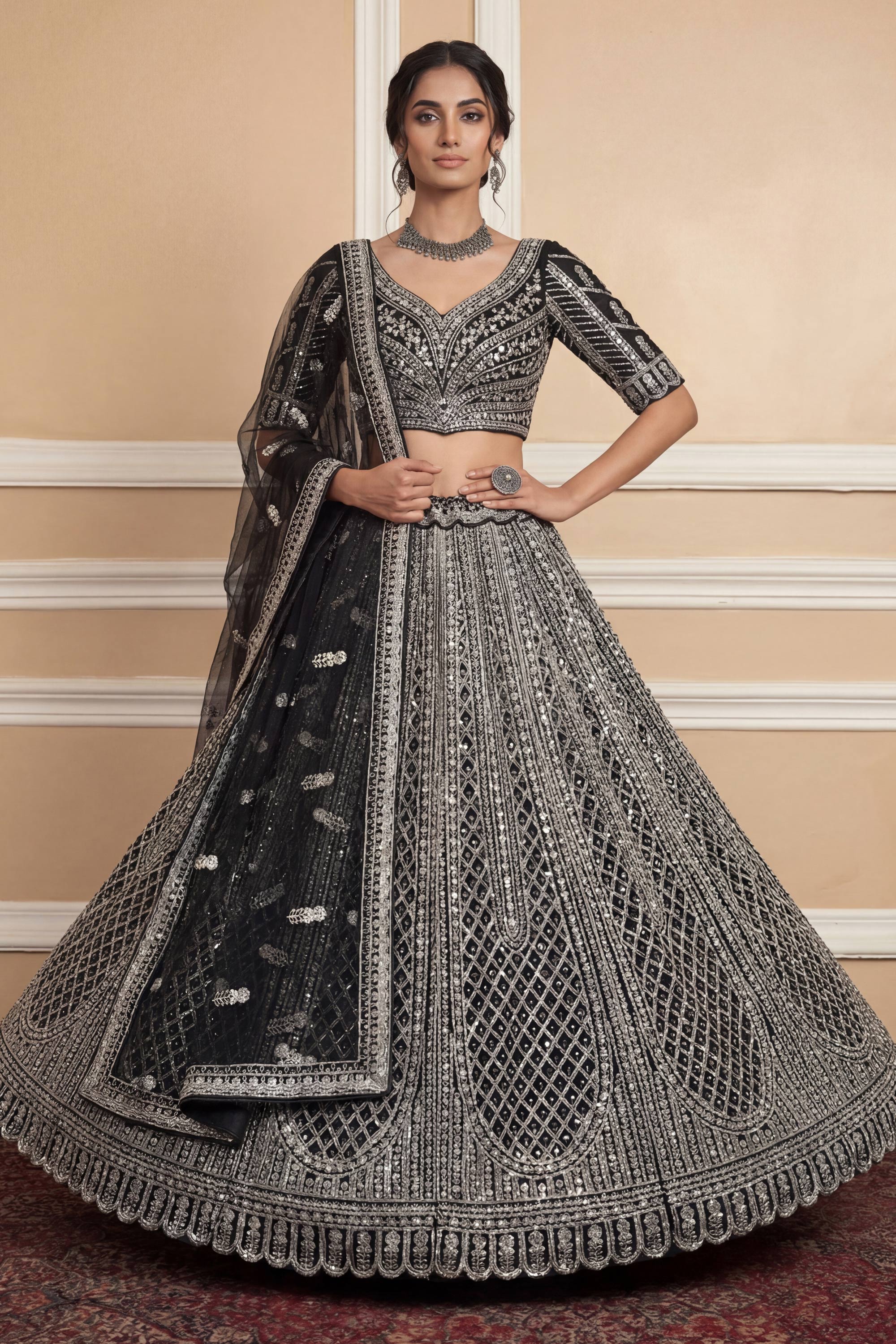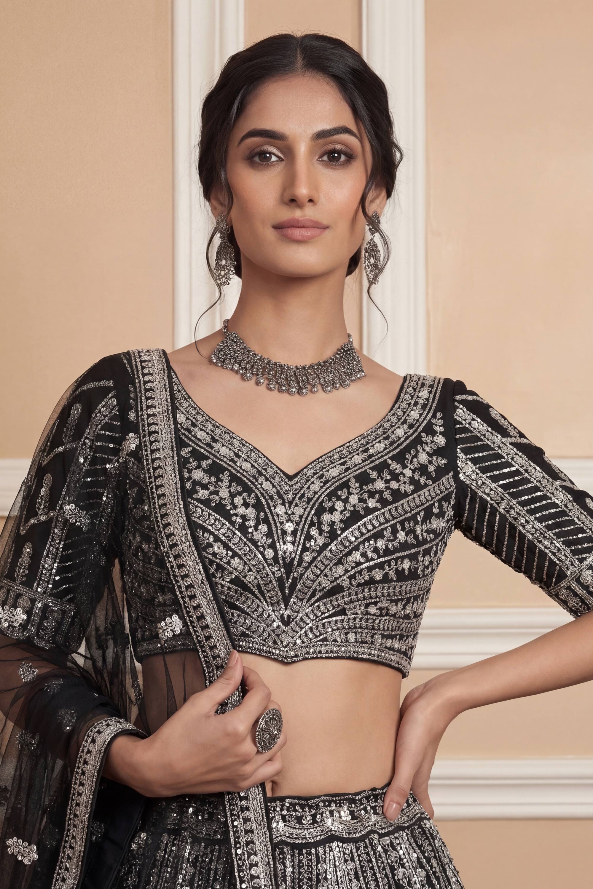 Net Fabric Sequins Embroidered Black Wedding Wear Lehenga Choli With Dupatta
