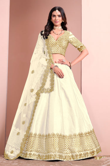 Off White Color Art Silk Fabric Sangeet Wear Lehenga Choli