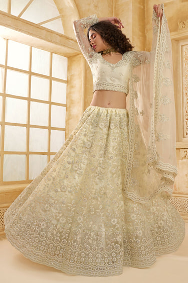 Off White Embroidered Designer Lehenga Choli With Blouse