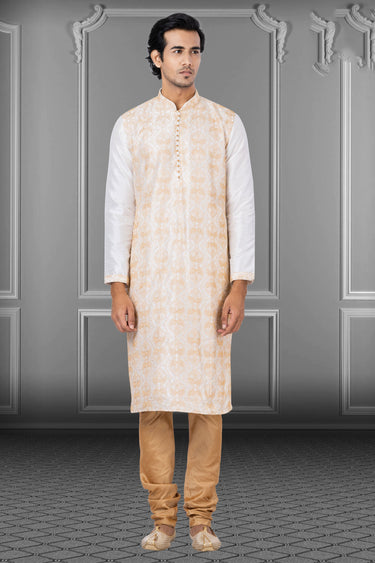 Off White Engaging Dhupion Fabric Festive Wear Readymade Kurta Pyjama For Men