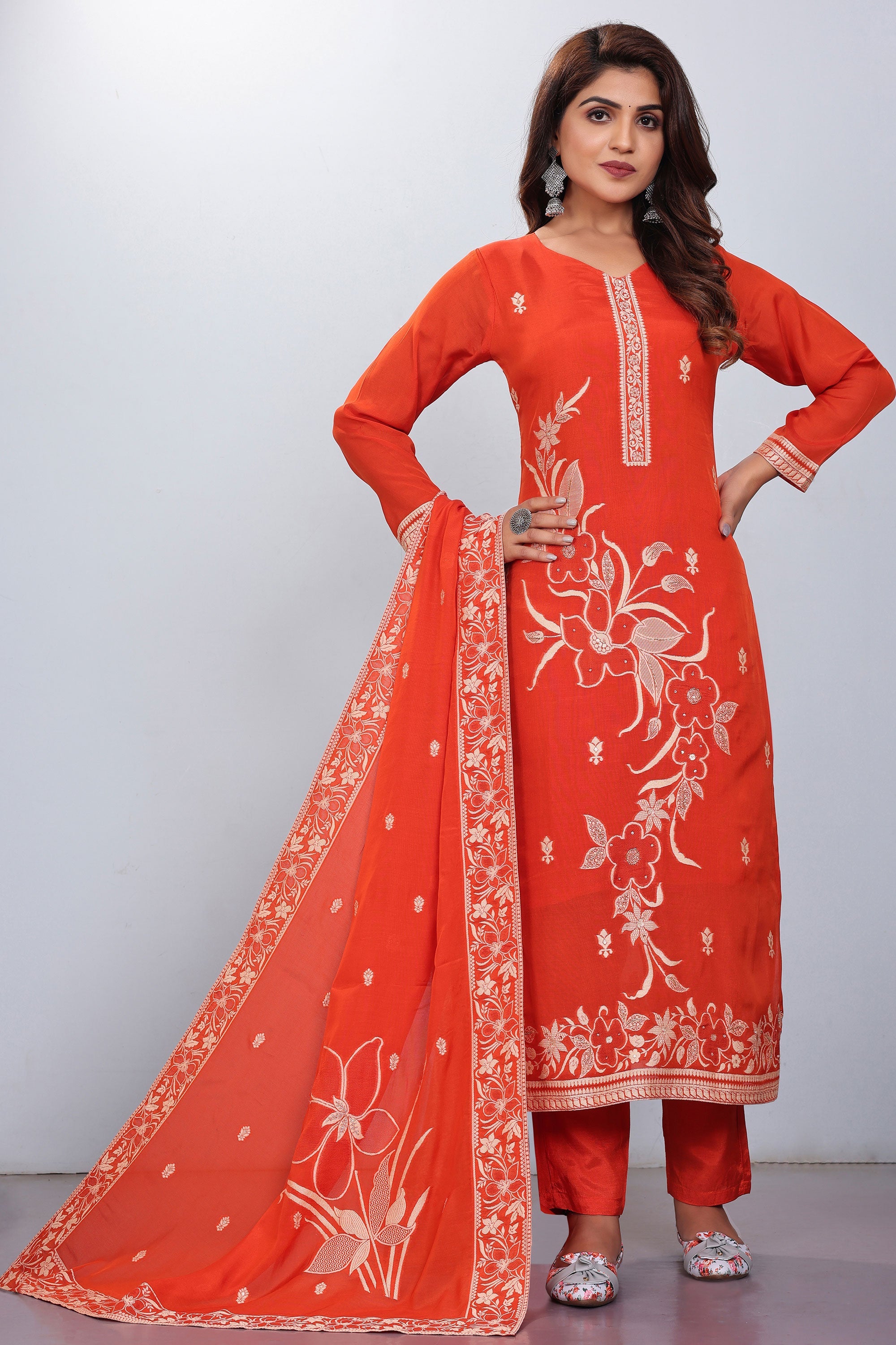 Orange Color Jacquard Fabric Glamorous Readymade Salwar Suit