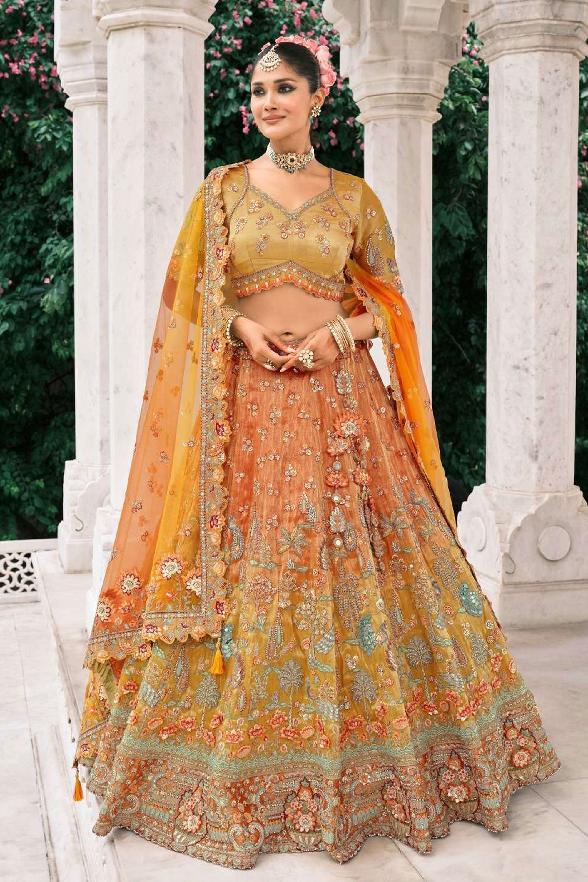 Orange Color Wedding Wear Art Silk Fabric Incredible Lehenga Choli