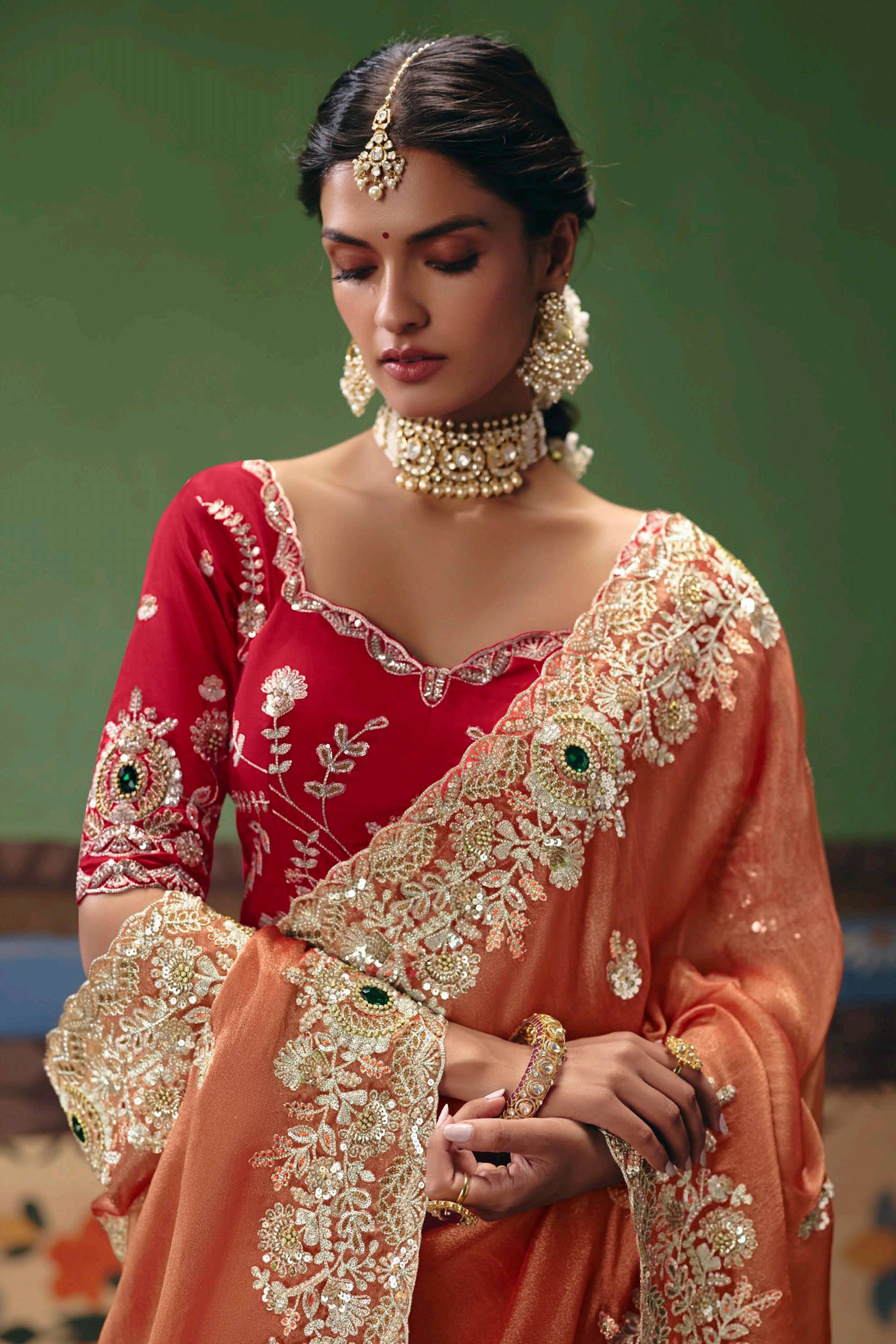 Orange Function Wear Art Silk Embroidered Border Work Designer Saree