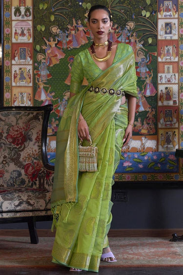 Organza Fabric Embellished Handloom Weaving Green Saree