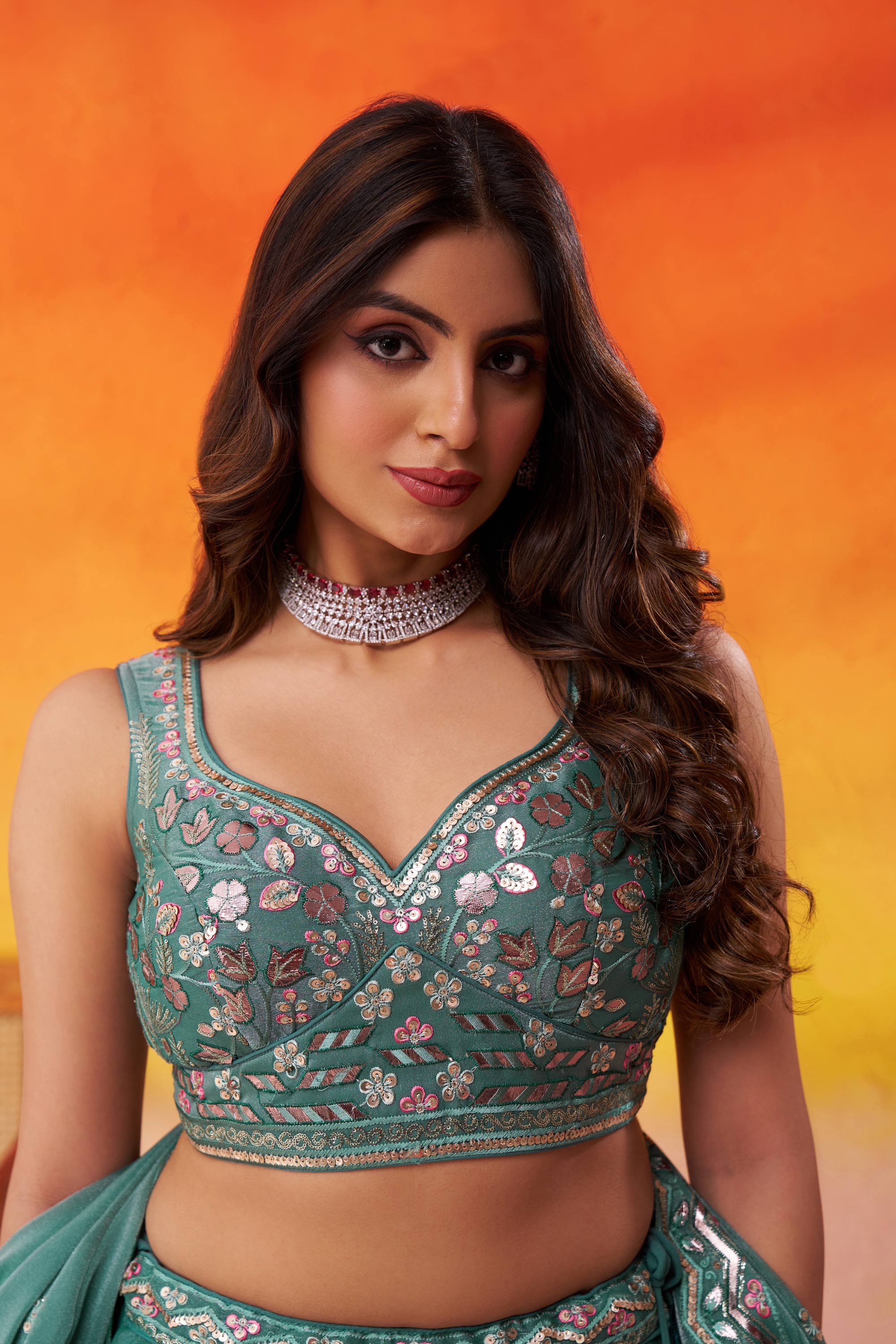 Organza Fabric Embroidered Teal Wedding Wear Lehenga Choli With Dupatta