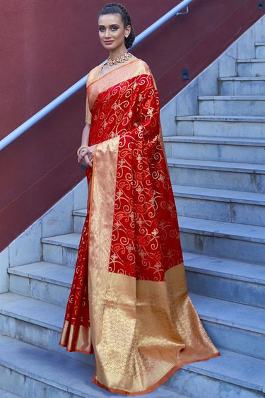 Patola Art Silk Fabric Puja Wear Trendy Red Color Weaving Work Saree