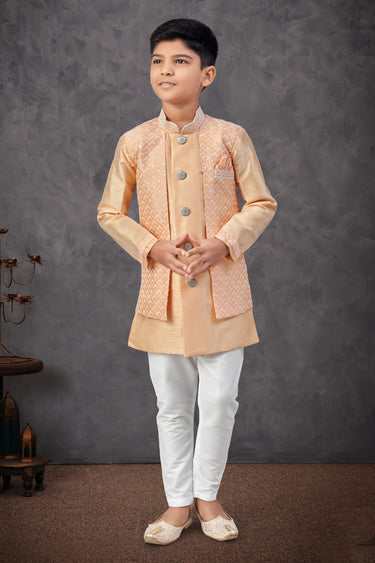 Peach Color Banarasi Silk Fabric Readymade Indo Western For Boys