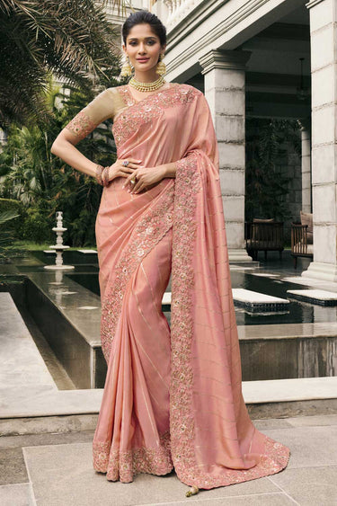 Peach Color Tissue Silk Wedding Wear Trendy Saree