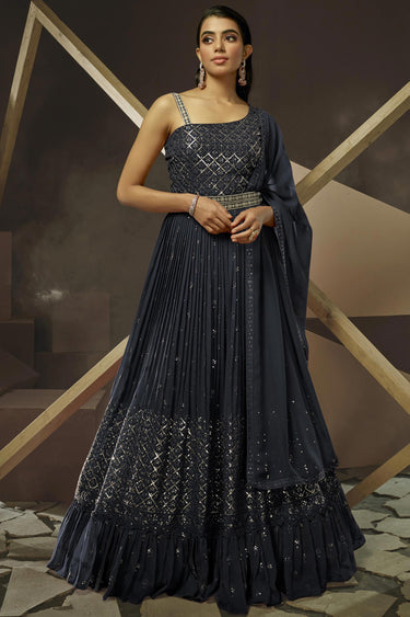 Persian Georgette Fabric Embroidered Readymade Gown With Dupatta