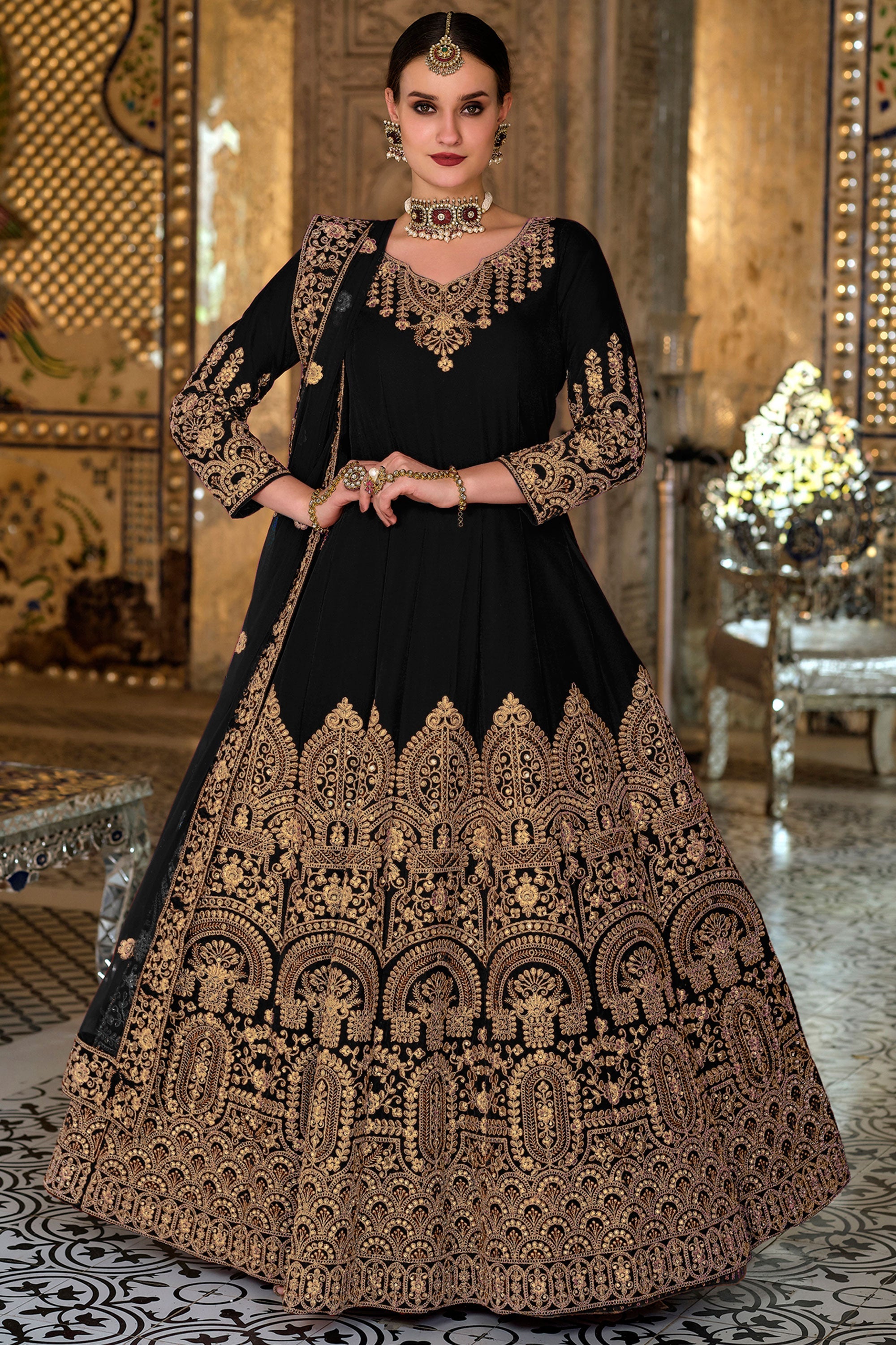 Phenomenal Wedding Wear Black Color Velvet Anarkali Suit