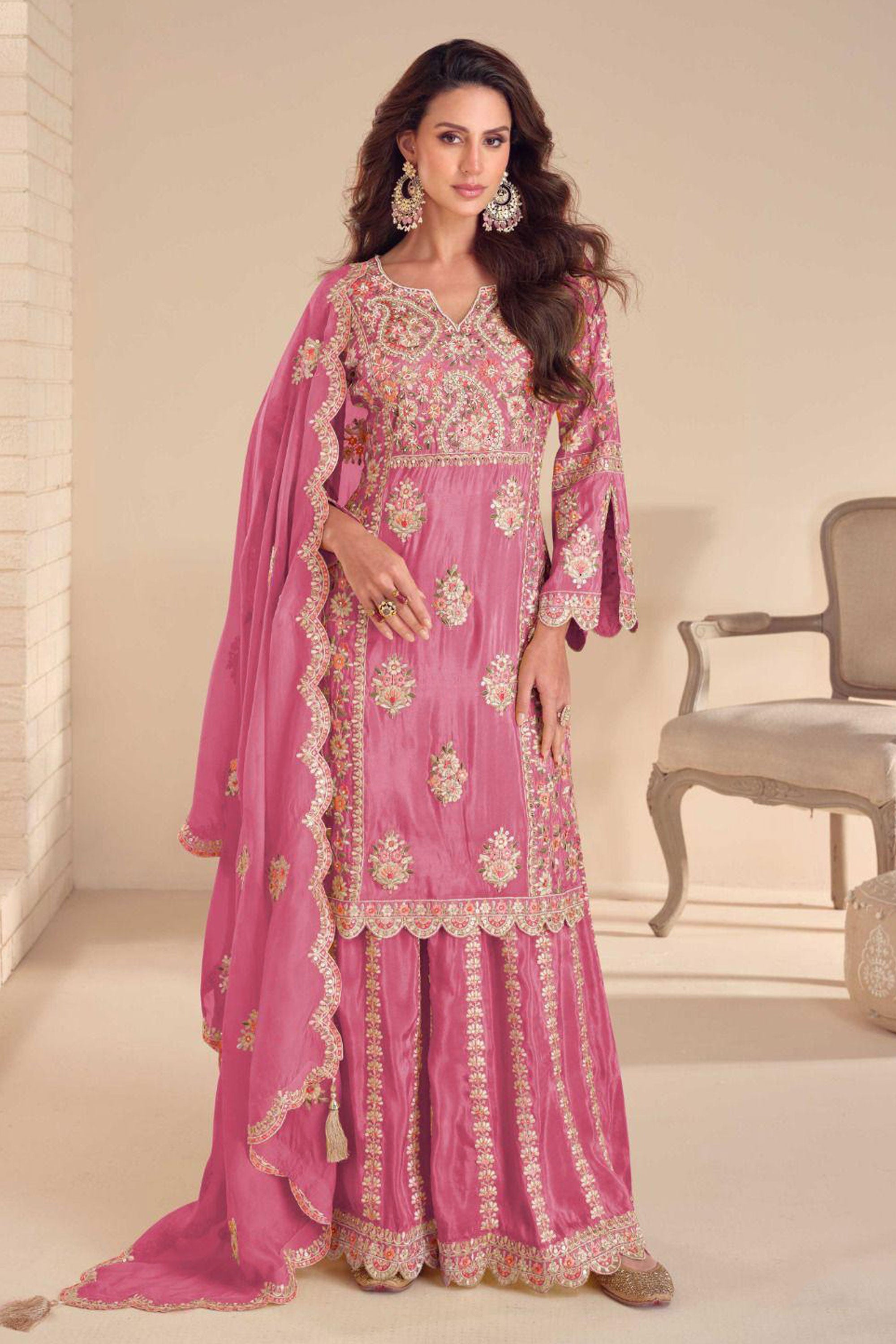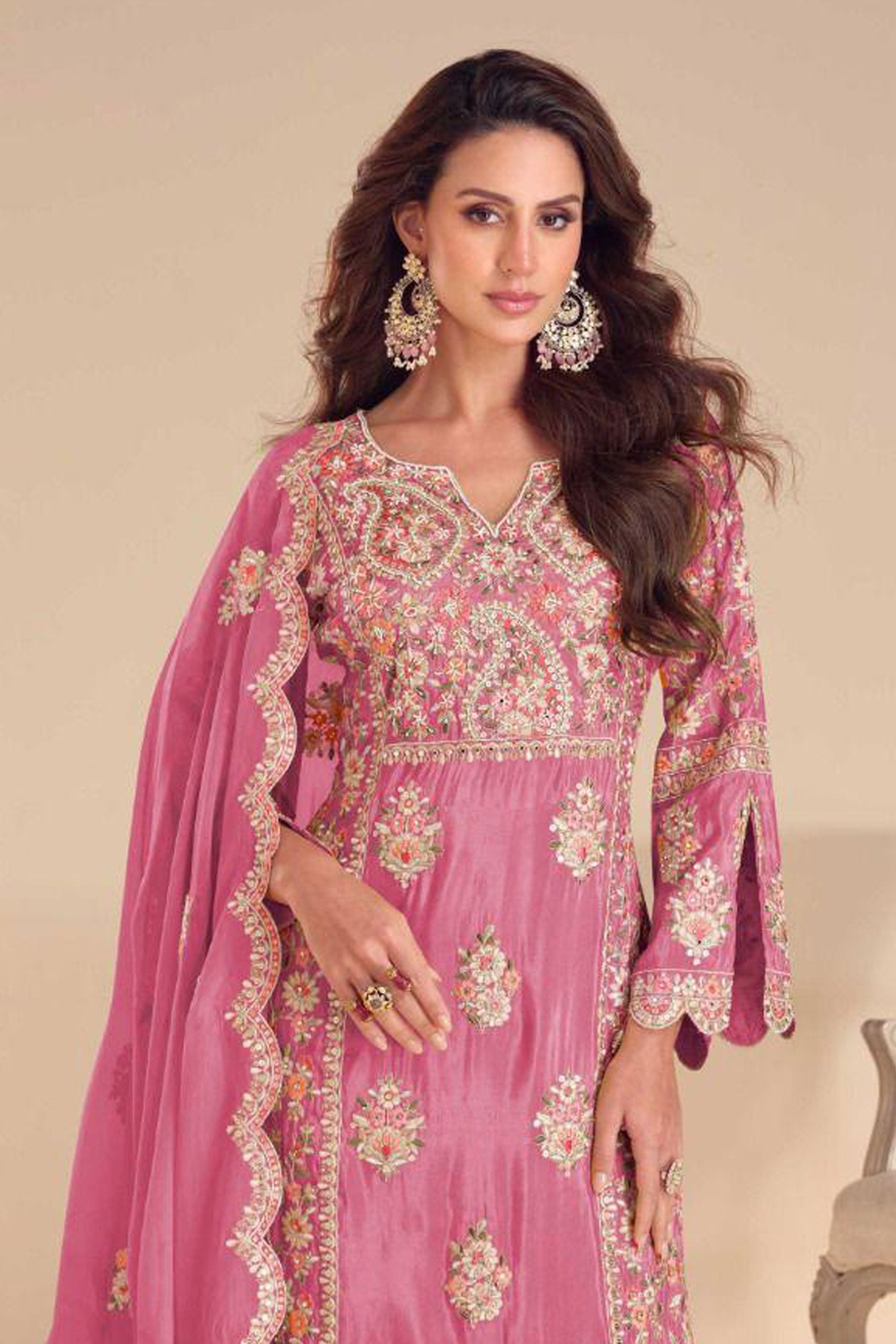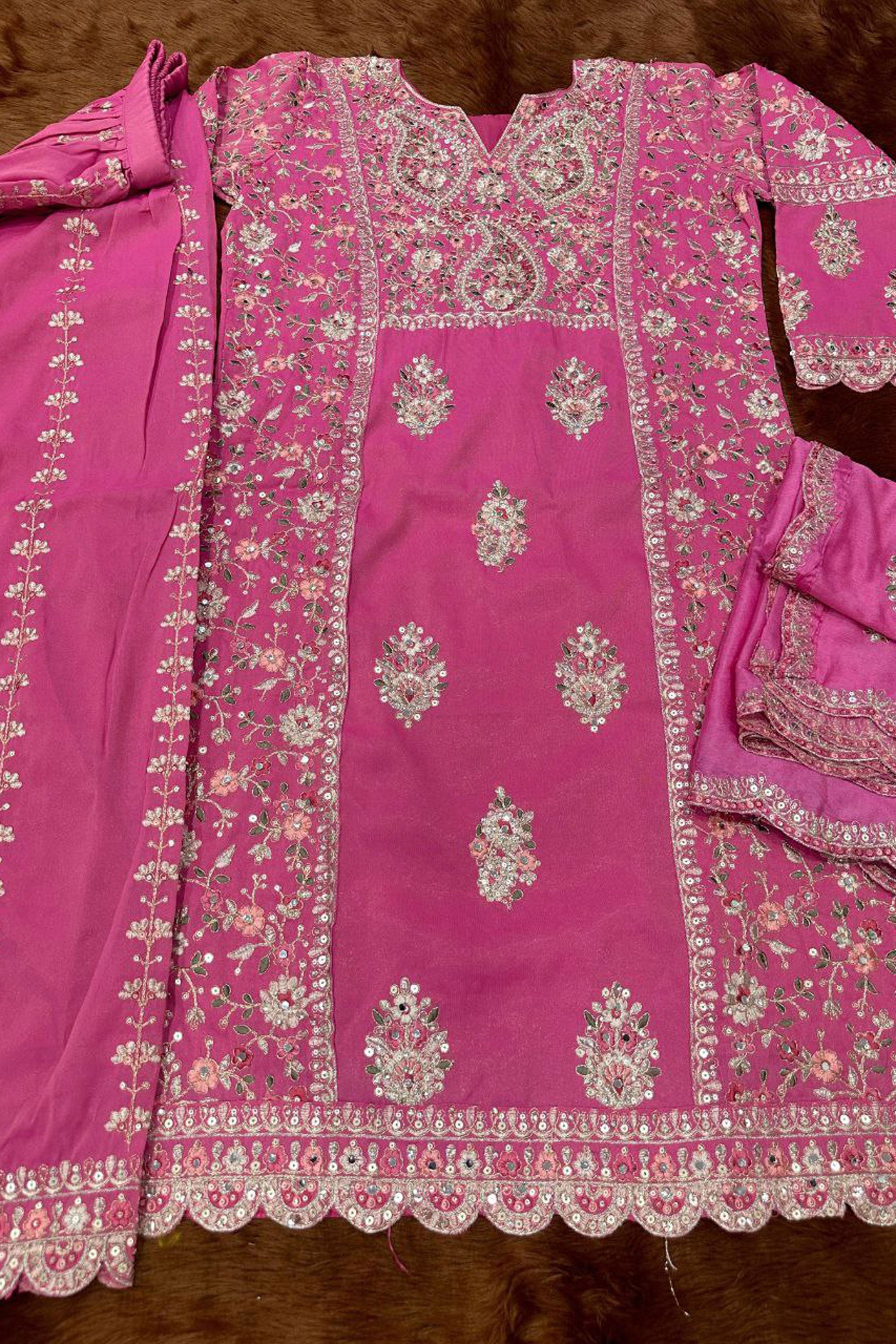 Pink Art Silk Embroidereded Readymade Palazzo Suit
