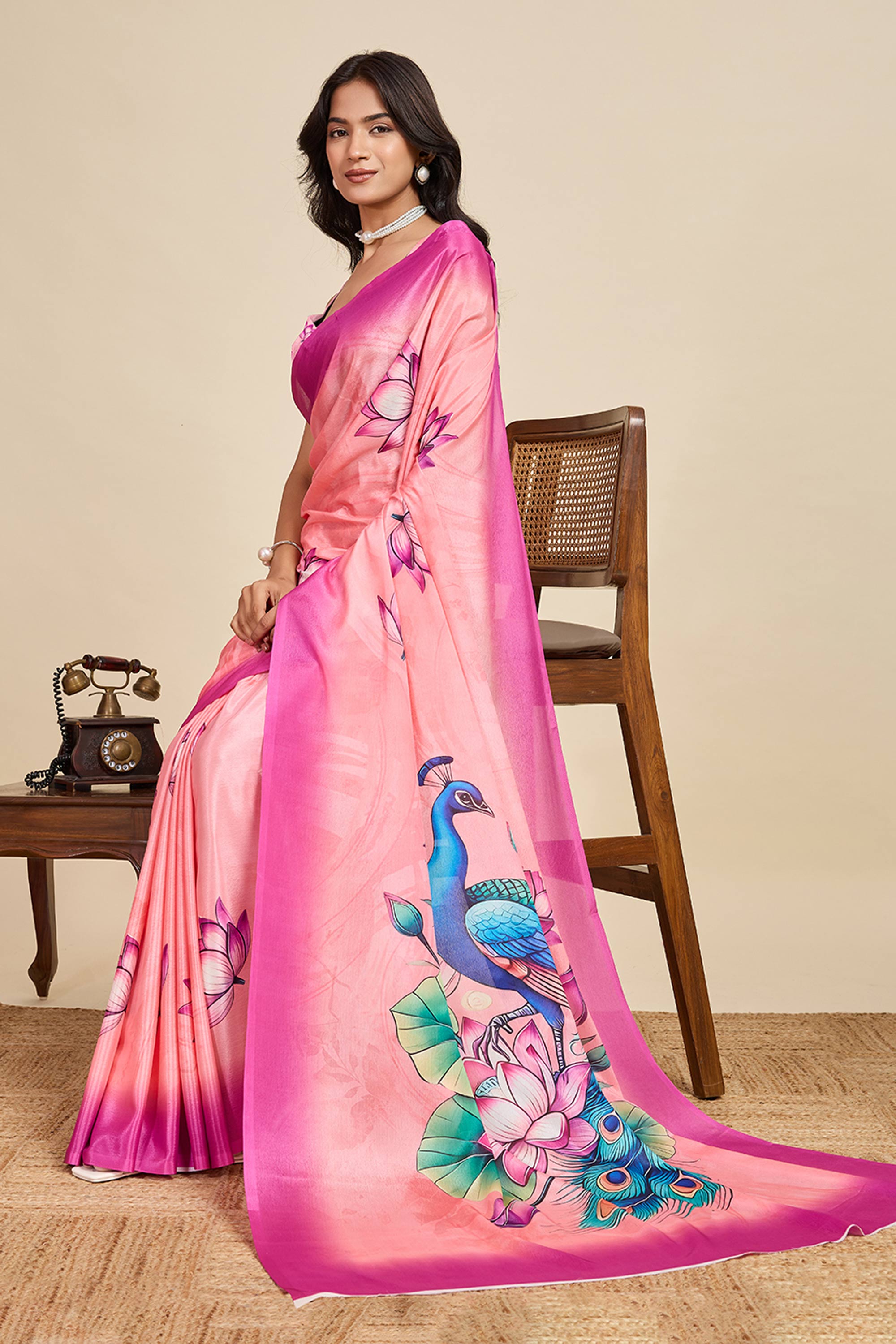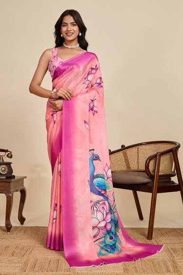 Pink Casual Wear Chinon Digital Printed Saree