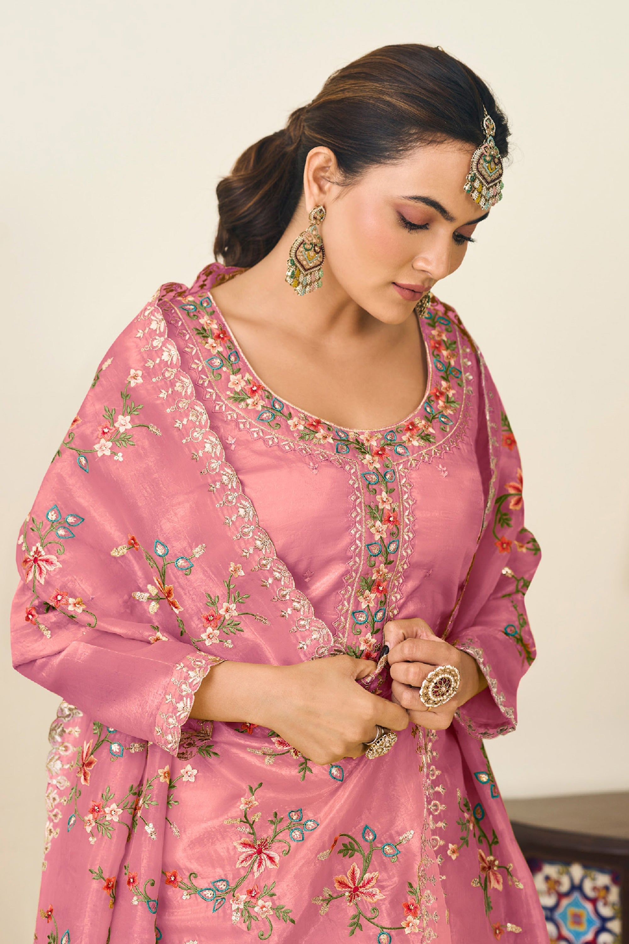 Pink Color Art Silk Fabric Designer Straight Cut Suit