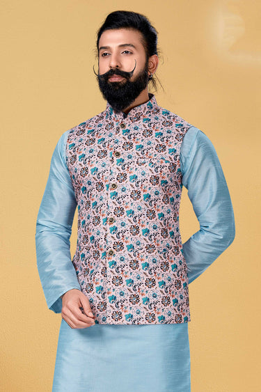 Pink Color Cotton Fabric Festive Wear Readymade Jacket For Men