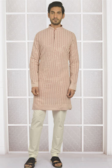 Pink Color Cotton Fabric Festive Wear Readymade Kurta For Men