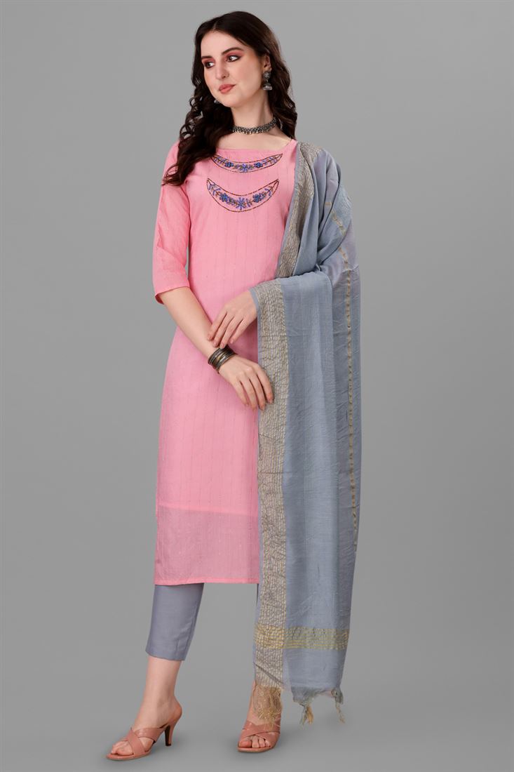 Pink Color Engaging Casual Look Cotton Salwar Suit