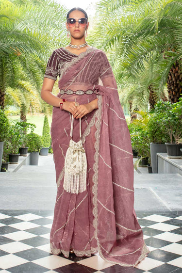 Pink Color Organza Saree with Lace Work