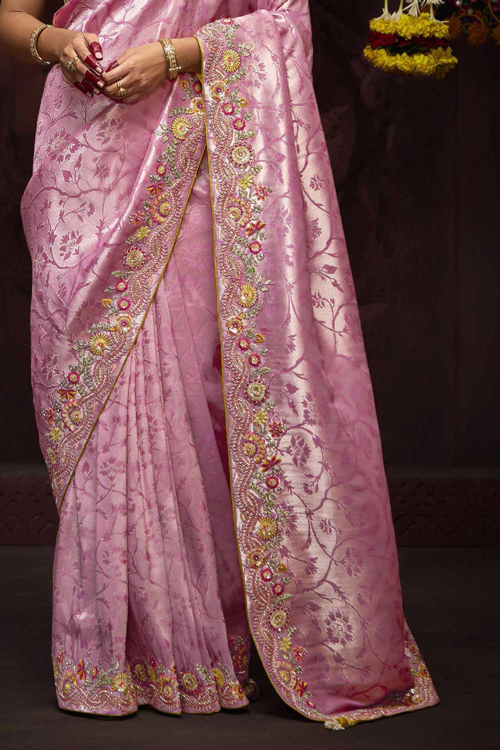 Embrace timeless elegance with this Traditional Silk Saree, crafted to elevate your ethnic style. Made from luxurious silk fabric, the saree drapes effortlessly, giving you a graceful silhouette. Complementing the saree is a matching silk blouse, adding a seamless charm to the ensemble. The intricate border work highlights the saree’s rich heritage, making it perfect for weddings, festive occasions, and celebrations. Pair it with statement jewellery to complete your look. Slight color variations may occur due to different lighting conditions. This saree isn’t just attire – it’s tradition redefined with sophistication!