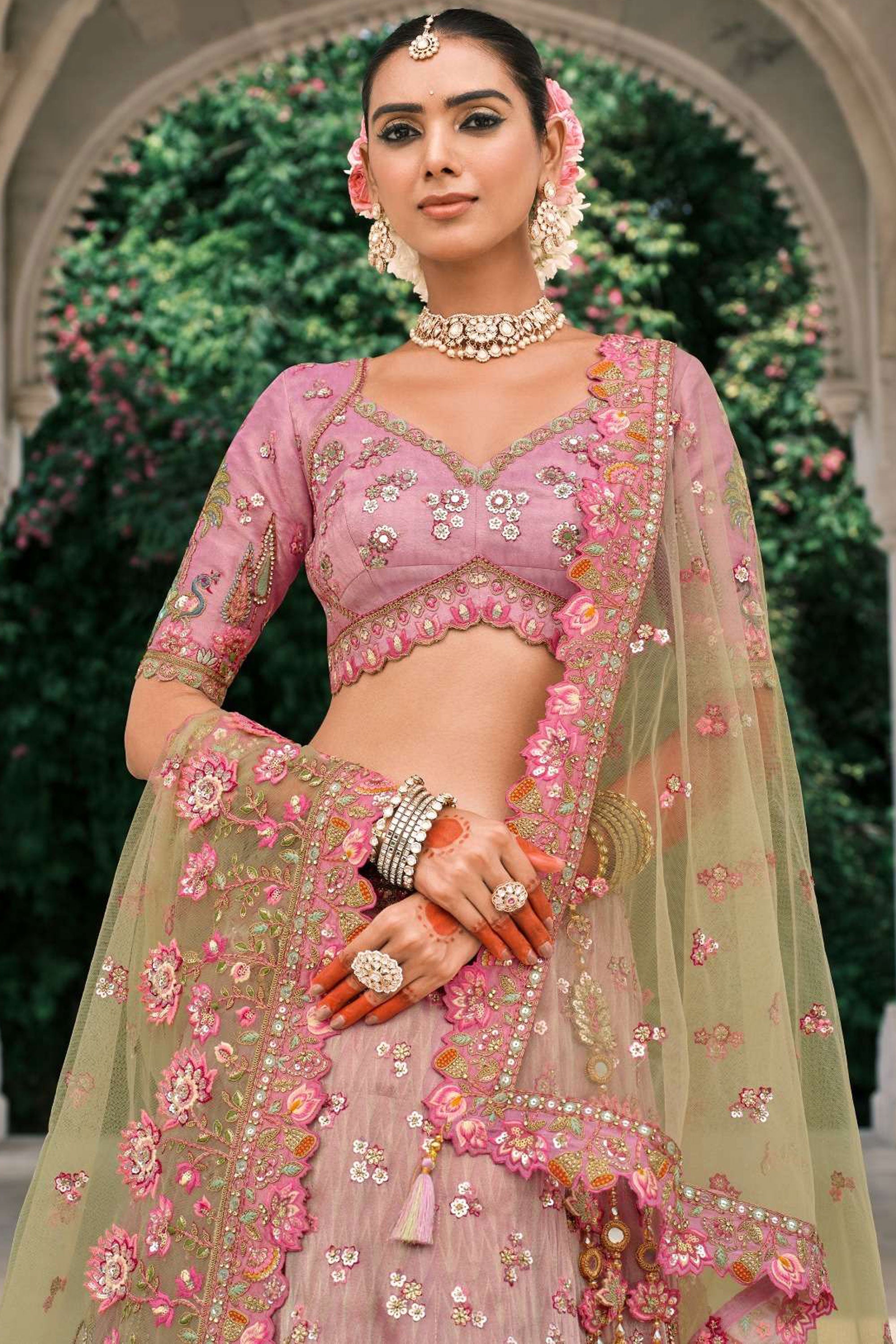 Pink Color Wedding Wear Art Silk Fabric Charismatic Lehenga Choli