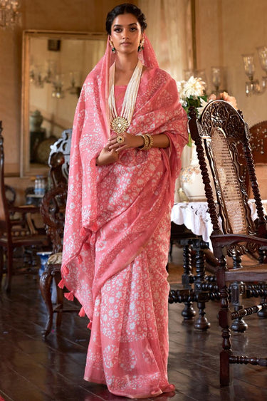 Pink Colour Printed Ceremonial Trendy Saree