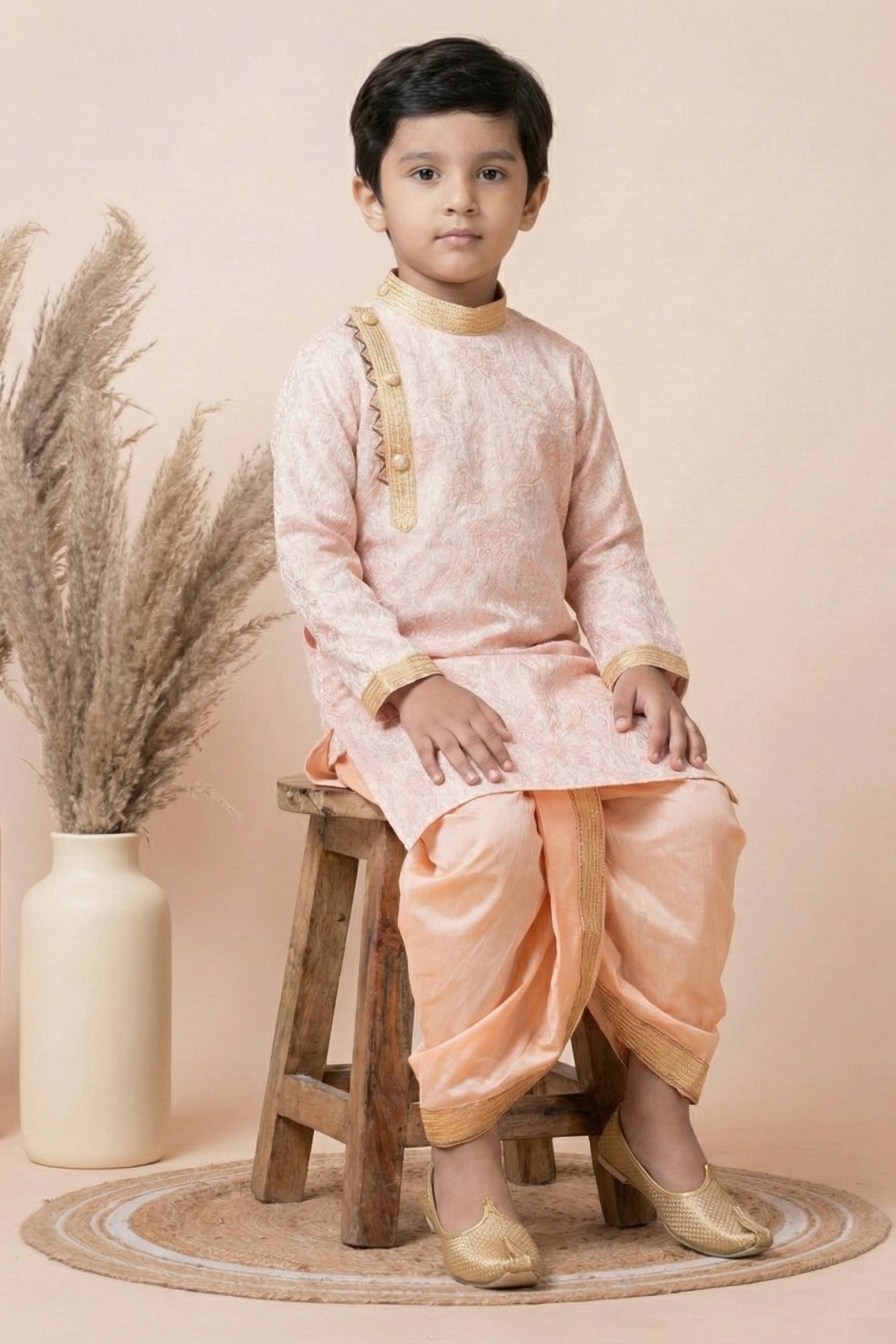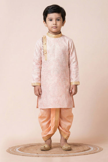 Pink Cotton Fabric Festive Wear Readymade Kurta With Dhoti For Boys