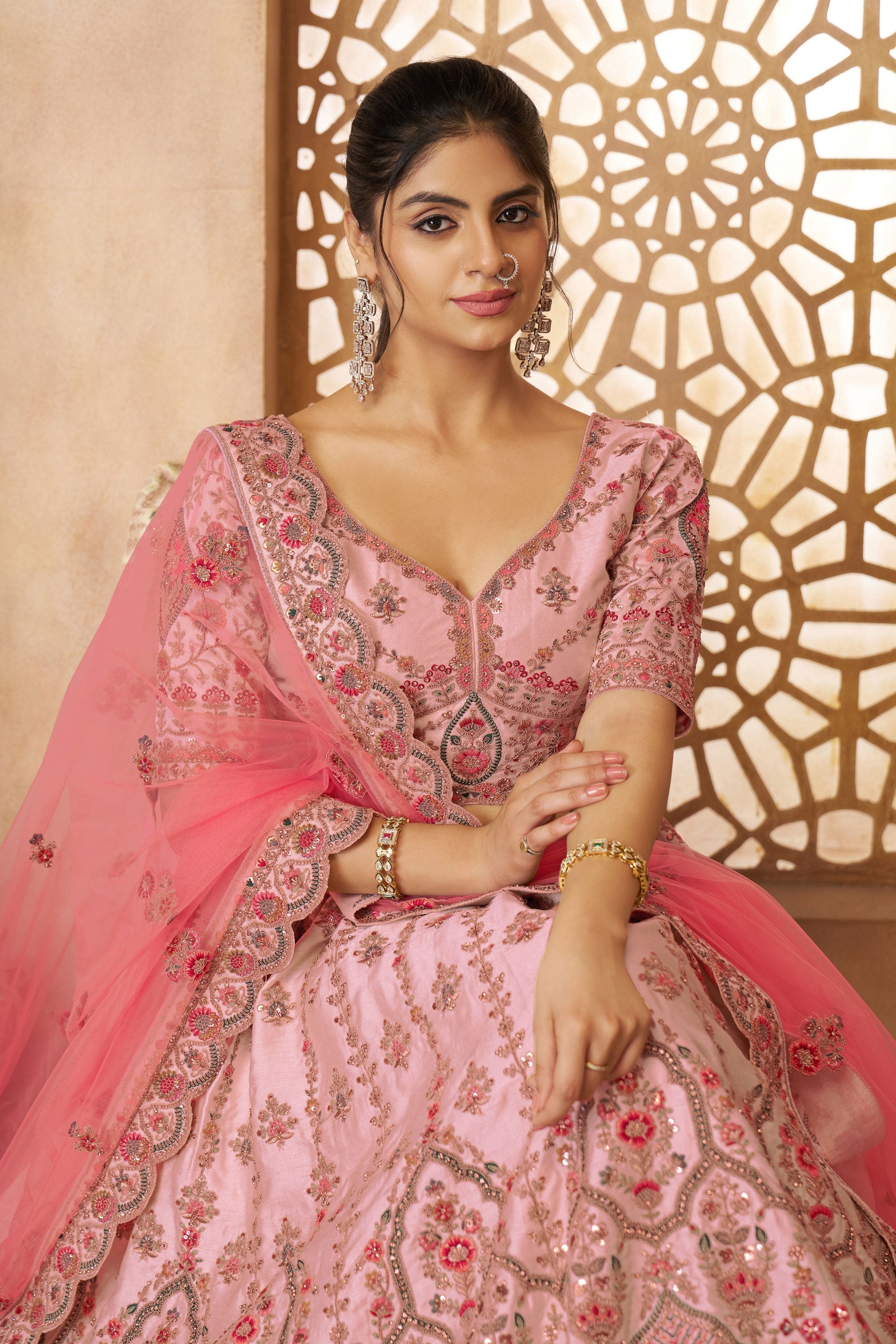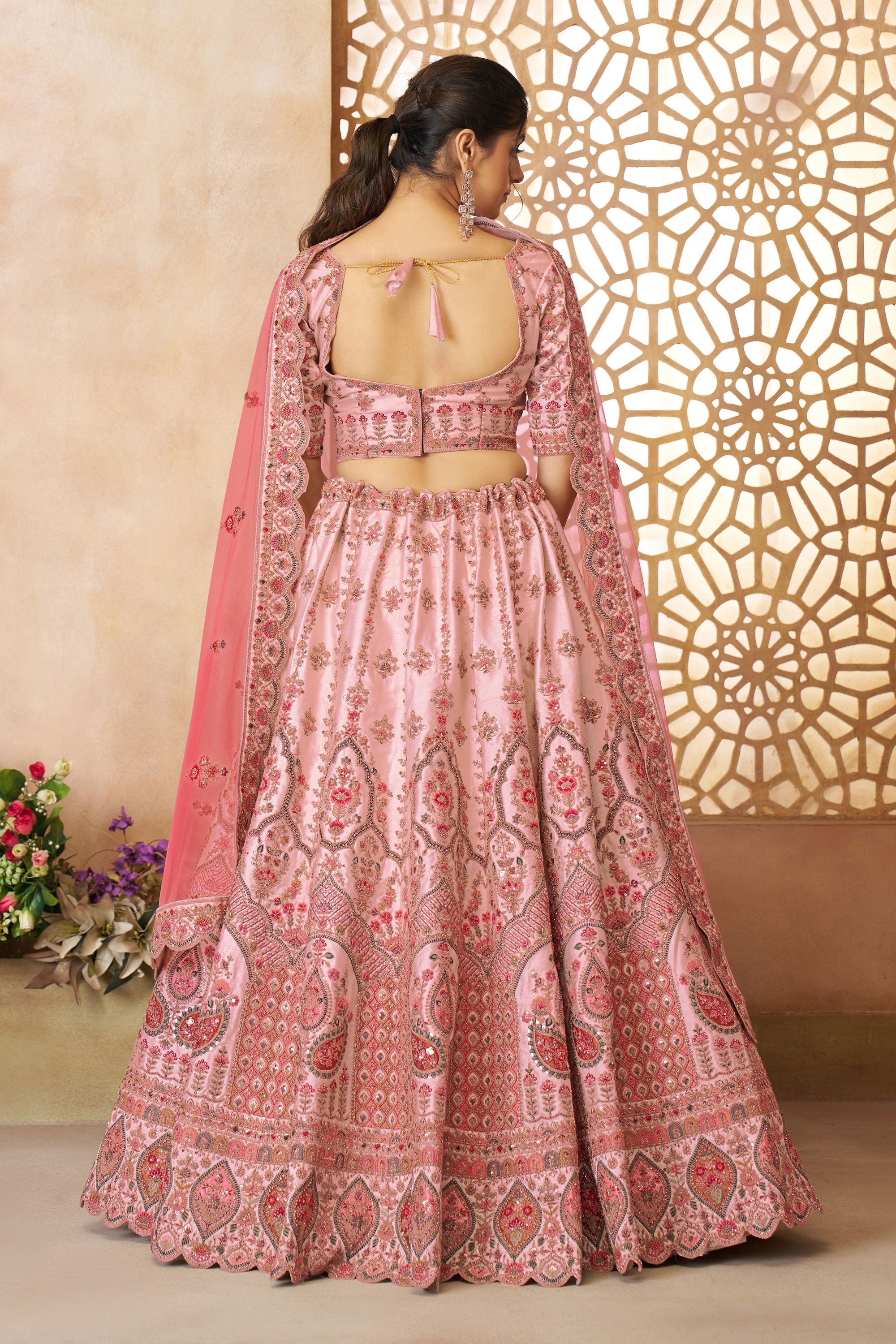 Pink Silk Fabric Wedding Wear Lehenga Choli