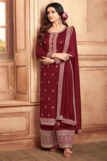 Prachi Desai Maroon Color Engrossing Art Silk Palazzo Suit For Function