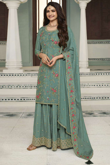 Prachi Desai Radiant Sea Green Color Viscose Fabric Palazzo Suit