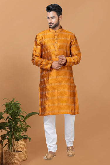 Pretty Art Silk Fabric Readymade Men Kurta Pyjama In Mustard Color