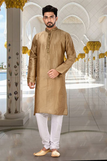 Pretty Art Silk Fabric Sangeet Wear Readymade Men Kurta Pyjama In Brown Color