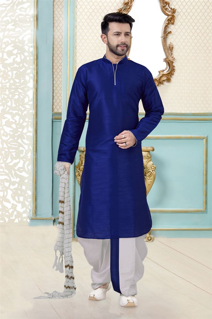 Pretty Blue Color Art Silk Fabric Festive Wear Readymade Dhoti Style Kurta For Men