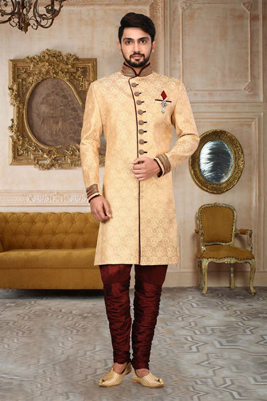 Pretty Fancy Fabric Sangeet Wear Readymade Men Indo Western In Beige Color