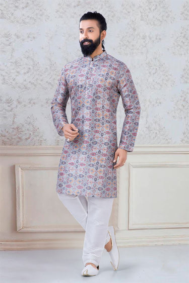 Pretty Grey Color Art Silk Fabric Wedding Wear Fancy Readymade Kurta Pyjama For Men