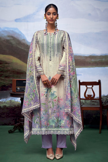 Printed Lavender Straight Cut Suit In Pure Linen Fabric