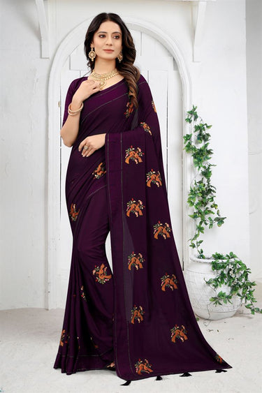 Purple Chinon Fabric Function Wear Designer Saree