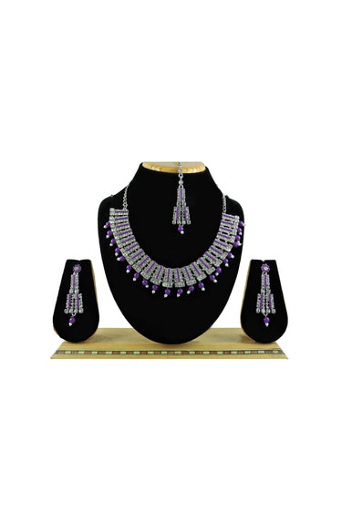 Purple Color Alloy Material Beauteous Necklace Set Earrings And Mang Tikka For Women