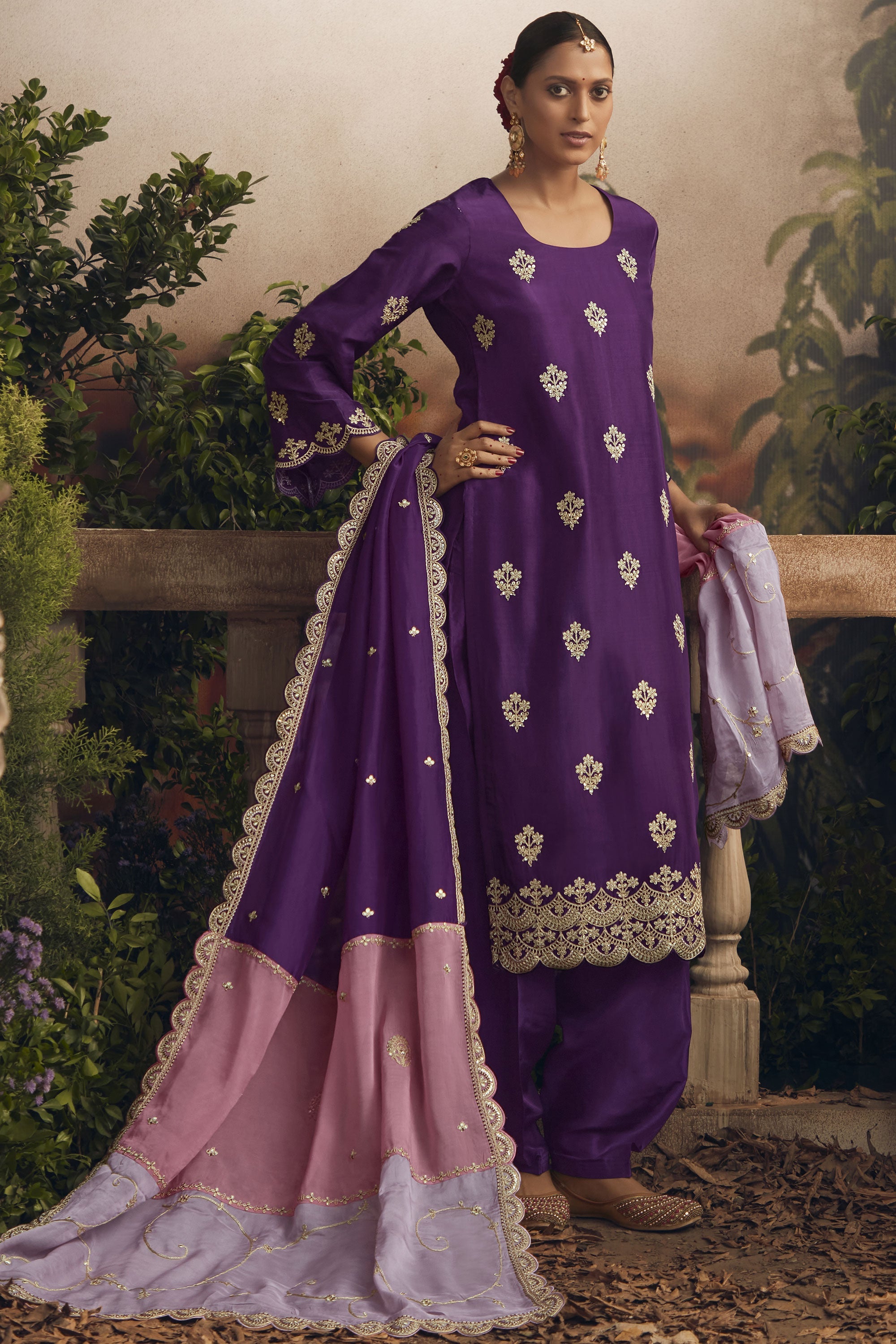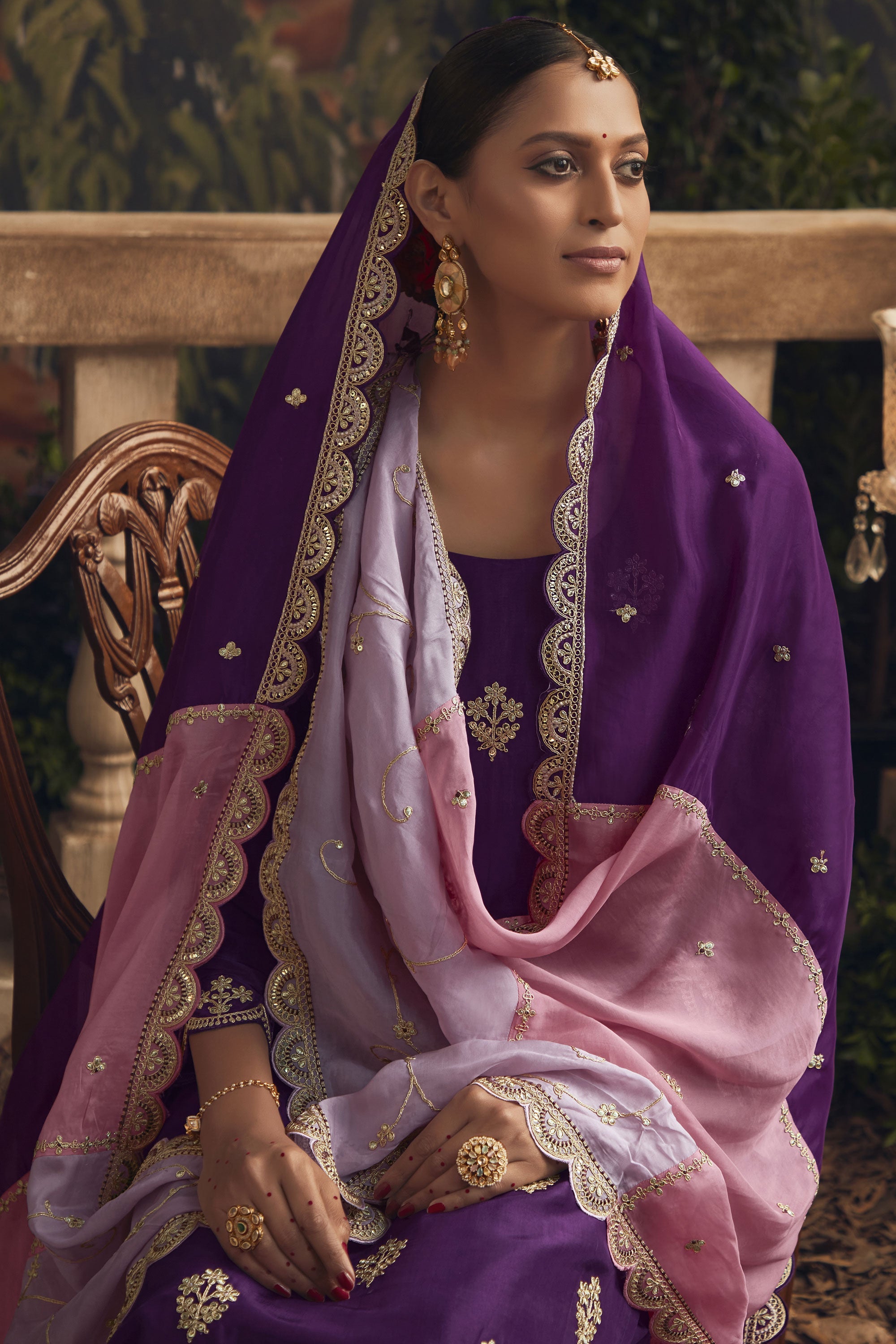 Purple Color Art Silk Fabric Alluring Festive Wear Salwar Suit