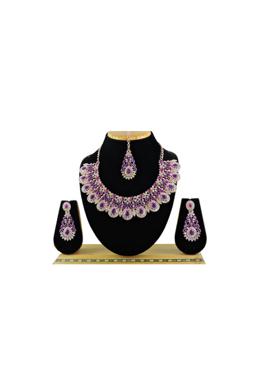 Purple Color Gorgeous Alloy Material Necklace with Earrings and Mang Tikka