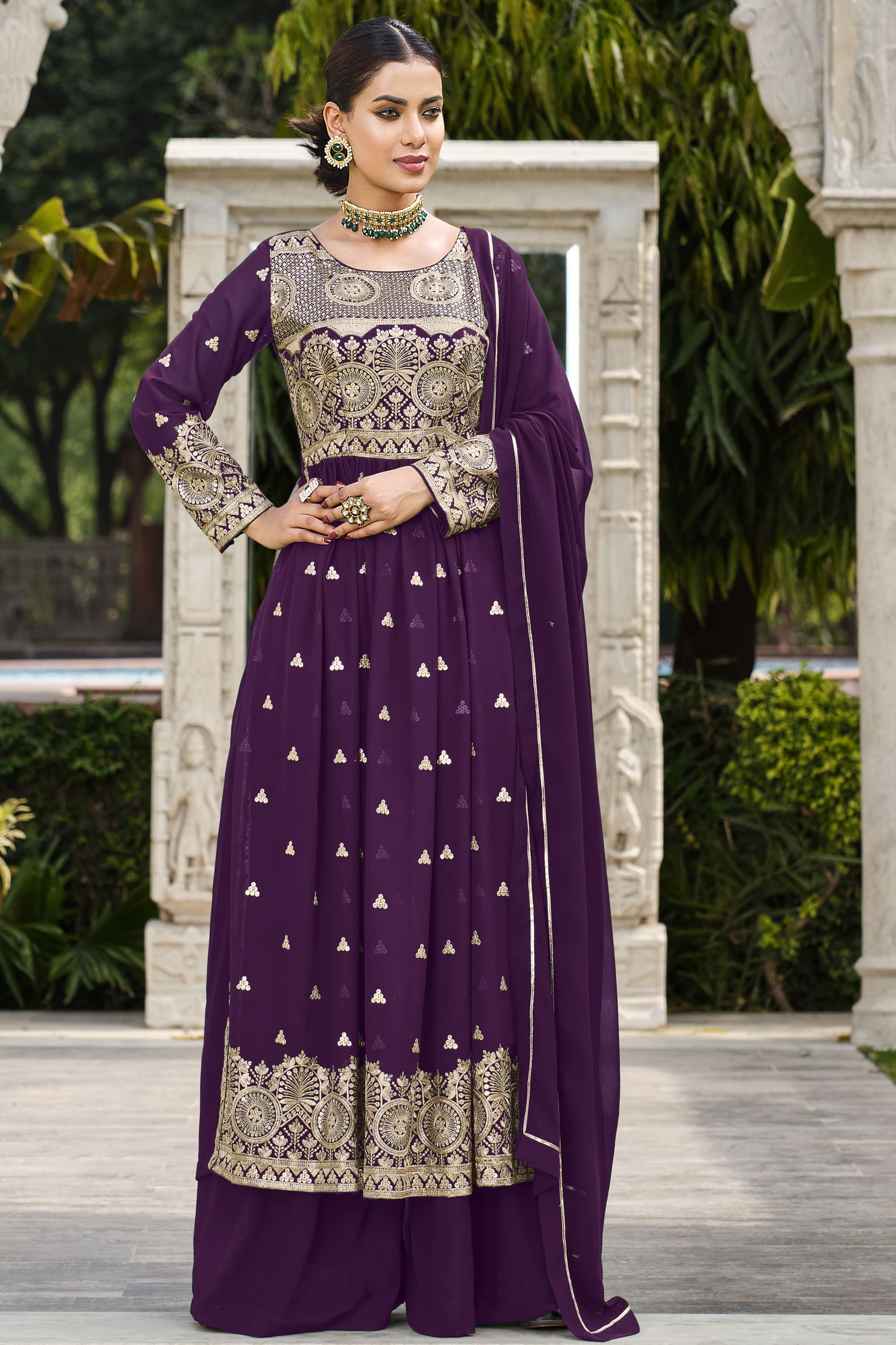 Purple Color Sequence Work Readymade Palazzo Salwar Suit In Georgette Fabric