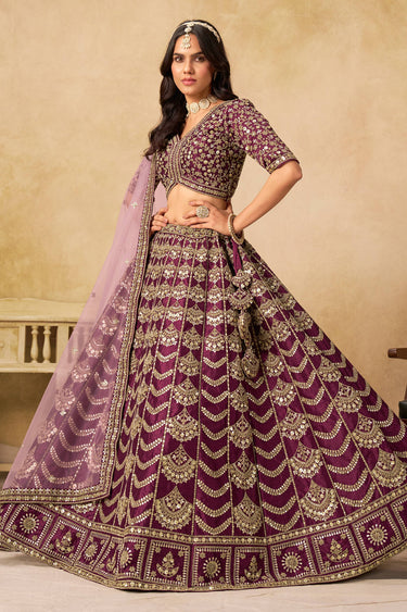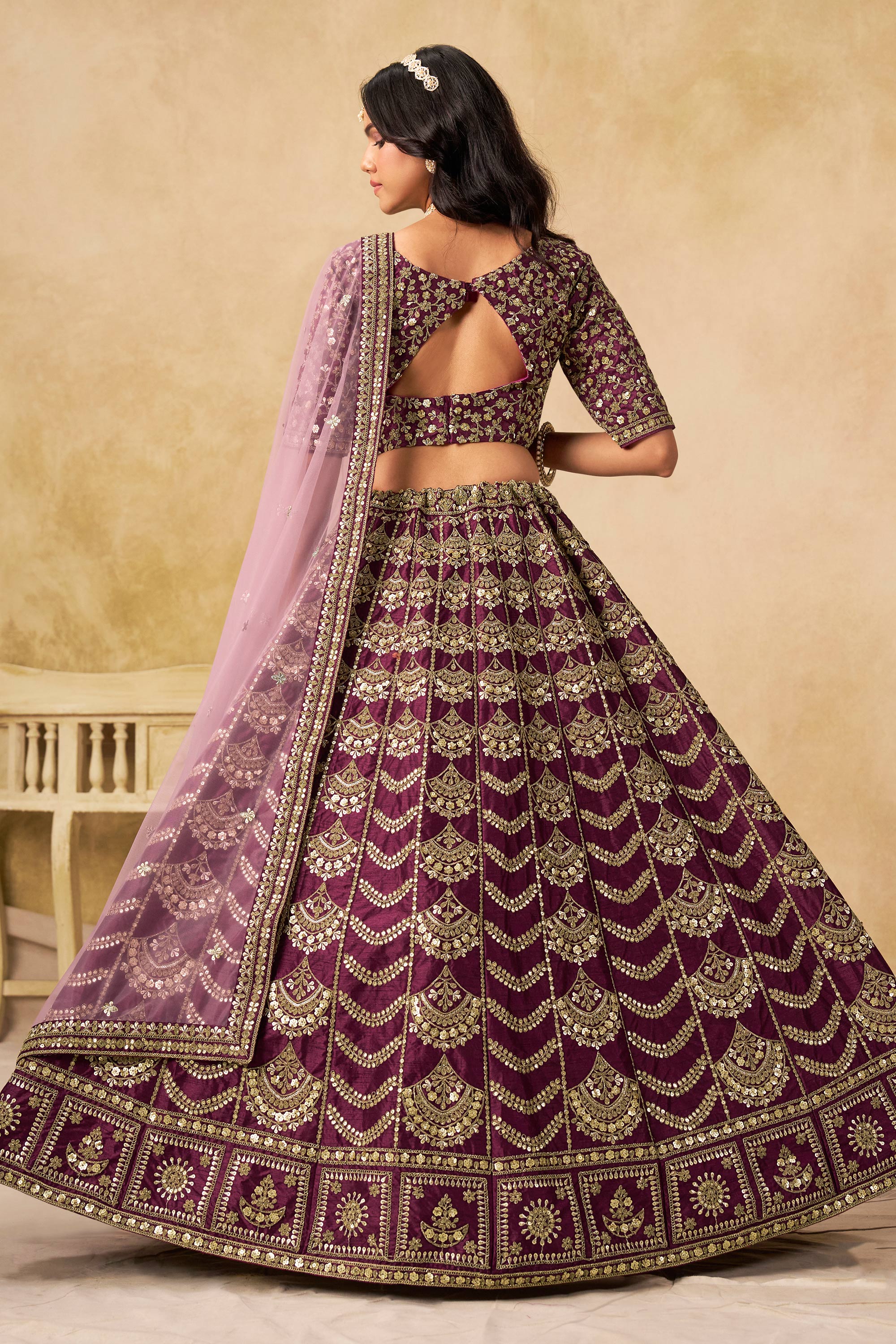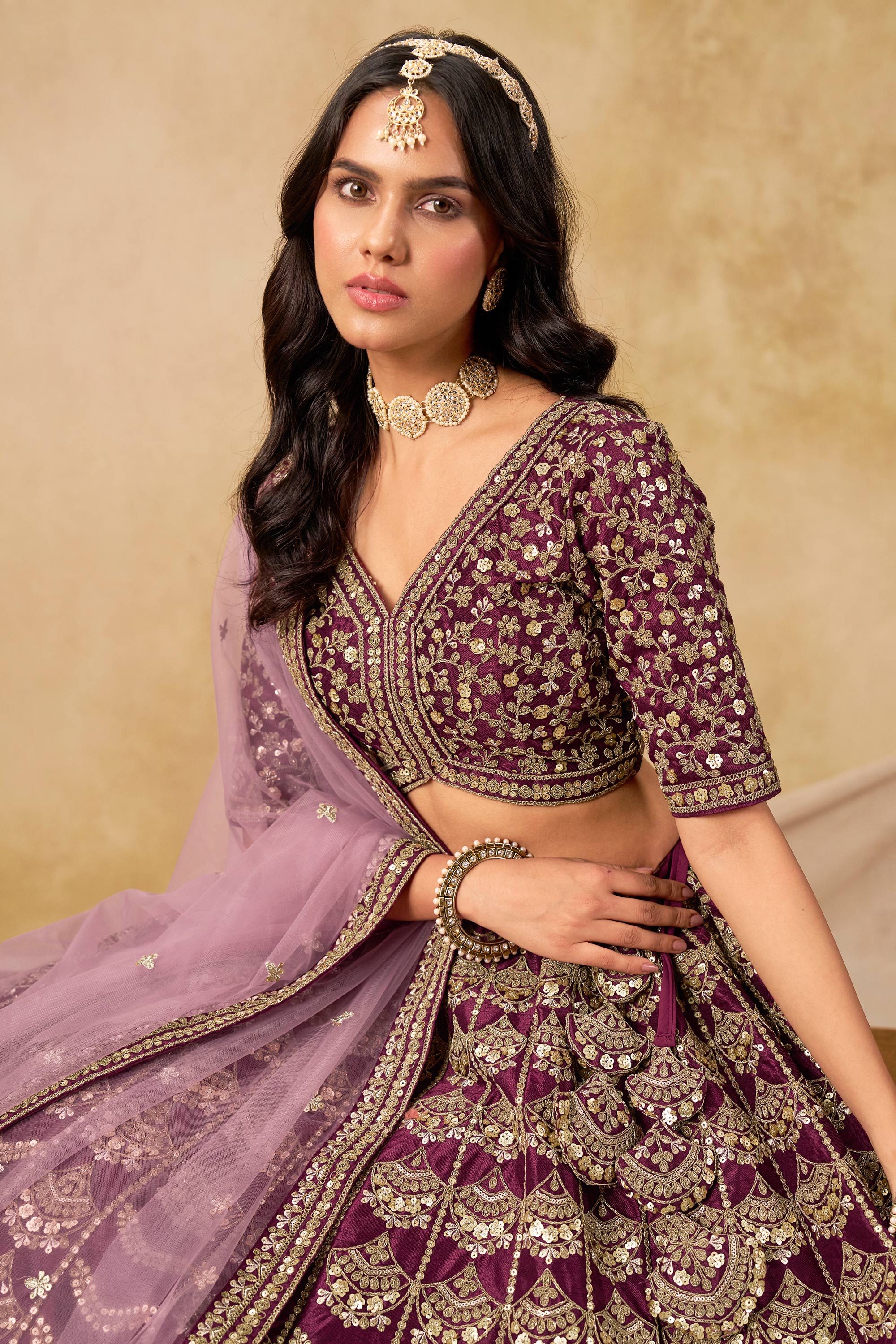 Purple Embroidered Art Silk Designer Lehenga Choli